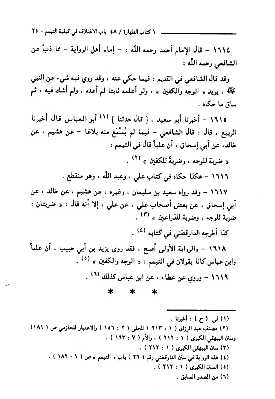 1618 - وَالرِّوَايَةُ الْأُولَى أَصَحُّ، فَقَدْ رَوَى يَزِيدُ بْنُ أَبِي حَبِيبٍ، أَنَّ عَلِيًّا، وَابْنَ عَبَّاسٍ، كَانَا يَقُولَانِ فِي التَّيَمُّمِ: الْوَجْهَ وَالْكَفَّيْنِ،