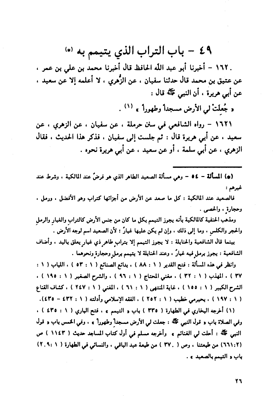 1620 - أَخْبَرَنَا أَبُو عَبْدِ اللَّهِ الْحَافِظُ قَالَ: أَخْبَرَنَا مُحَمَّدُ بْنُ عَلِيِّ بْنِ عُمَرَ، عَنْ عَتِيقِ بْنِ مُحَمَّدٍ قَالَ: حَدَّثَنَا سُفْيَانُ، عَنِ الزُّهْرِيِّ، لَا أَعْلَمُهُ إِلَّا عَنْ سَعِيدٍ، عَنْ أَبِي هُرَيْرَةَ، أَنَّ النَّبِيَّ صَلَّى اللهُ عَلَيْهِ وَسَلَّمَ قَالَ: § «جُعِلَتْ لِيَ الْأَرْضُ مَسْجِدًا وَطَهُورًا»
