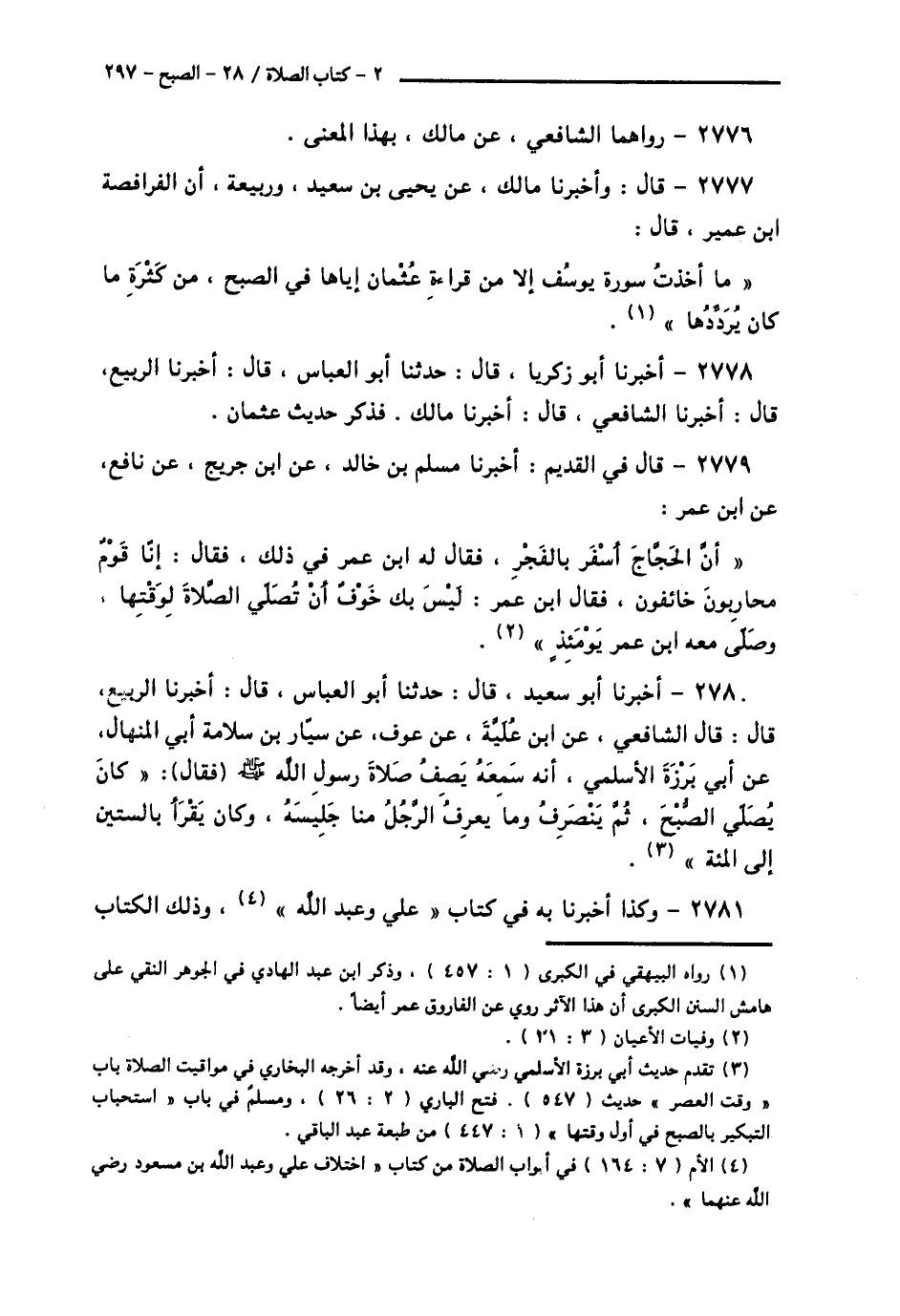 2779 - قَالَ فِي الْقَدِيمِ: أَخْبَرَنَا مُسْلِمُ بْنُ خَالِدٍ، عَنِ ابْنِ جُرَيْجٍ، عَنْ نَافِعٍ، عَنِ ابْنِ عُمَرَ، أَنَّ الْحَجَّاجَ: أَسْفَرَ بِالْفَجْرِ، فَقَالَ لَهُ ابْنُ عُمَرَ فِي ذَلِكَ، فَقَالَ: إِنَّا قَوْمٌ مُحَارِبُونَ خَائِفُونَ، فَقَالَ ابْنُ عُمَرَ: «§لَيْسَ بِكَ خَوْفٌ أَنْ تُصَلِّيَ الصَّلَاةَ لِوَقْتِهَا»، وَصَلَّى مَعَهُ ابْنُ عُمَرَ يَوْمَئِذٍ "