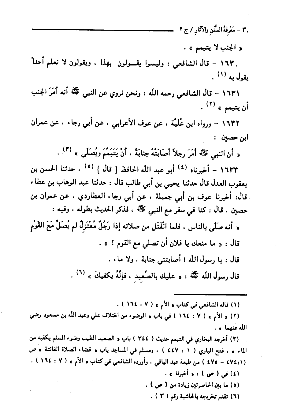1632 - وَرَوَاهُ ابْنُ عُلَيَّةَ، عَنْ عَوْفٍ الْأَعْرَابِيِّ، عَنْ أَبِي رَجَاءٍ، عَنْ عِمْرَانَ بْنِ حُصَيْنٍ، أَنَّ النَّبِيَّ صَلَّى اللهُ عَلَيْهِ وَسَلَّمَ: «أَمَرَ رَجُلًا أَصَابَتْهُ جَنَابَةٌ، أَنْ يَتَيَمَّمَ وَيُصَلِّي»،