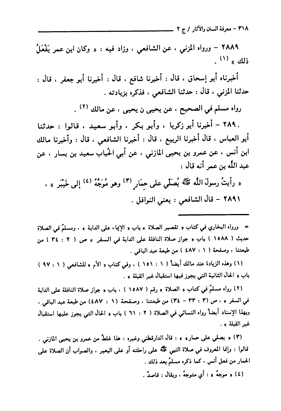 2890 - أَخْبَرَنَا أَبُو زَكَرِيَّا، وَأَبُو بَكْرٍ، وَأَبُو سَعِيدٍ، قَالُوا: حَدَّثَنَا أَبُو الْعَبَّاسِ قَالَ: أَخْبَرَنَا الرَّبِيعُ قَالَ: أَخْبَرَنَا الشَّافِعِيُّ قَالَ: وَأَخْبَرَنَا مَالِكُ بْنُ أَنَسٍ، عَنْ عَمْرِو بْنِ يَحْيَى الْمَازِنِيِّ، عَنْ أَبِي الْحُبَابِ سَعِيدِ بْنِ يَسَارٍ، عَنْ عَبْدِ اللَّهِ بْنِ عُمَرَ، أَنَّهُ قَالَ: «رَأَيْتُ رَسُولَ اللَّهِ صَلَّى اللهُ عَلَيْهِ وَسَلَّمَ §يُصَلِّي عَلَى حِمَارٍ، وَهُوَ مُوَجَّهٌ إِلَى خَيْبَرَ»