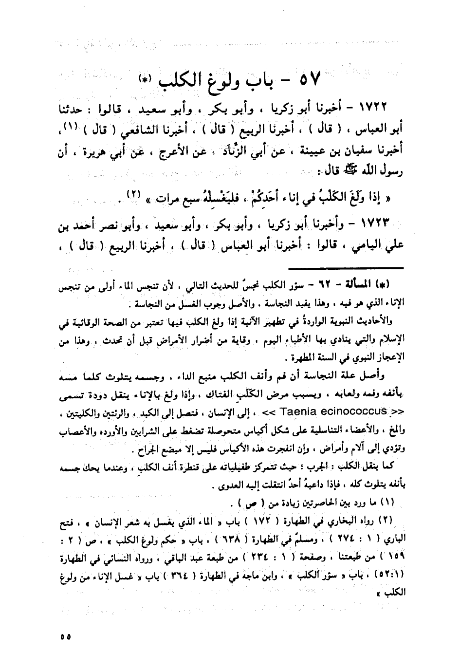 1723 - وَأَخْبَرَنَا أَبُو زَكَرِيَّا، وَأَبُو بَكْرٍ، وَأَبُو سَعِيدٍ، وَأَبُو نَصْرٍ أَحْمَدُ بْنُ عَلِيٍّ الْيَامِيُّ، قَالُوا: أَخْبَرَنَا أَبُو الْعَبَّاسِ قَالَ: أَخْبَرَنَا الرَّبِيعُ قَالَ -[56]-: أَخْبَرَنَا الشَّافِعِيُّ قَالَ: أَخْبَرَنَا مَالِكٌ، عَنْ أَبِي الزِّنَادِ، عَنِ الْأَعْرَجِ، عَنْ أَبِي هُرَيْرَةَ، أَنَّ رَسُولَ اللَّهِ صَلَّى اللهُ عَلَيْهِ وَسَلَّمَ قَالَ: «§إِذَا شَرِبَ الْكَلْبُ فِي إِنَاءِ أَحَدِكُمْ، فَلْيَغْسِلْهُ سَبْعَ مَرَّاتٍ» هَذَا حَدِيثٌ صَحِيحٌ، لَا يَشُكُّ أَهْلُ الْمَعْرِفَةِ فِي صِحَّتِهِ. رَوَاهُ الْبُخَارِيُّ فِي الصَّحِيحِ، عَنْ عَبْدِ اللَّهِ بْنِ يُوسُفَ، عَنْ مَالِكٍ وَرَوَاهُ مُسْلِمٌ، عَنْ يَحْيَى بْنِ يَحْيَى، عَنْ مَالِكٍ،