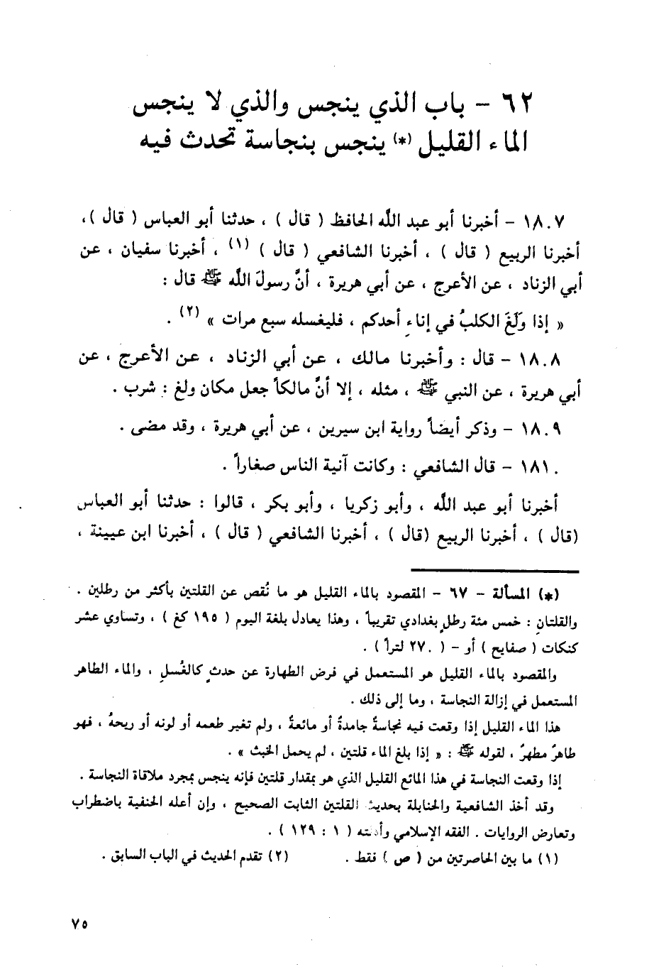 1810 - قَالَ الشَّافِعِيُّ: وَكَانَتْ آنِيَةُ النَّاسِ صِغَارًا، أَخْبَرَنَا أَبُو عَبْدِ اللَّهِ، وَأَبُو زَكَرِيَّا، وَأَبُو بَكْرٍ، قَالُوا: حَدَّثَنَا أَبُو الْعَبَّاسِ قَالَ: أَخْبَرَنَا الرَّبِيعُ قَالَ: أَخْبَرَنَا الشَّافِعِيُّ قَالَ: أَخْبَرَنَا ابْنُ عُيَيْنَةَ -[76]-، عَنْ أَبِي الزِّنَادِ عَنْ مُوسَى بْنِ أَبِي عُثْمَانَ، عَنْ أَبِيهِ، عَنْ أَبِي هُرَيْرَةَ، أَنَّ رَسُولَ اللَّهِ صَلَّى اللهُ عَلَيْهِ وَسَلَّمَ قَالَ: § «لَا يَبُولَنَّ أَحَدُكُمْ فِي الْمَاءِ الدَّائِمِ ثُمَّ يَغْتَسِلُ مِنْهُ»