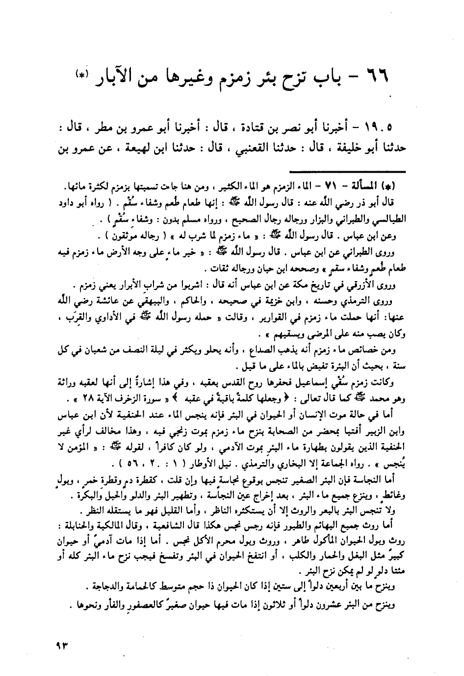 §بَابُ نَزْحِ بِئْرِ زَمْزَمَ وَغَيْرِهَا مِنَ الْآبَارِ