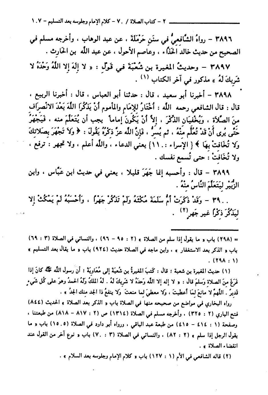 3898 - أَخْبَرَنَا أَبُو سَعِيدٍ قَالَ: حَدَّثَنَا أَبُو الْعَبَّاسِ قَالَ: أَخْبَرَنَا الرَّبِيعُ، قَالَ: قَالَ الشَّافِعِيُّ رَحِمَهُ اللَّهُ: " أَخْتَارُ لِلْإِمَامِ، وَالْمَأْمُومِ أَنْ يَذْكُرَا اللَّهَ، بَعْدَ الِانْصِرَافِ مِنَ الصَّلَاةِ، وَيُخْفِيَانِ الذِّكْرَ، إِلَّا أَنْ يَكُونَ إِمَامًا، يَجِبُ أَنْ يُتَعَلَّمَ مِنْهُ، فَيَجْهَرُ حَتَّى يَرَى أَنْ قَدْ تُعُلِّمَ مِنْهُ، ثُمَّ يُسِرُّ، فَإِنَّ اللَّهَ عَزَّ ذِكْرُهُ، يَقُولُ: {§وَلَا تَجْهَرْ بِصَلَاتِكَ، وَلَا تُخَافِتْ بِهَا} [الإسراء: 110] يَعْنِي الدُّعَاءَ، وَاللَّهُ أَعْلَمُ، وَلَا تَجْهَرْ: تَرْفَعْ، وَلَا تُخَافِتْ: حَتَّى تُسْمِعَ نَفْسَكَ "