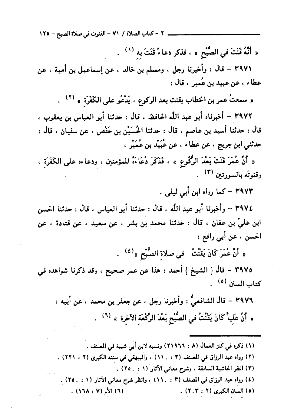 3976 - قَالَ الشَّافِعِيُّ: وَأَخْبَرَنَا رَجُلٌ، عَنْ جَعْفَرِ بْنِ مُحَمَّدٍ، عَنْ أَبِيهِ: أَنَّ عَلِيًّا كَانَ § «يَقْنُتُ فِي الصُّبْحِ بَعْدَ الرَّكْعَةِ الْآخِرَةِ»