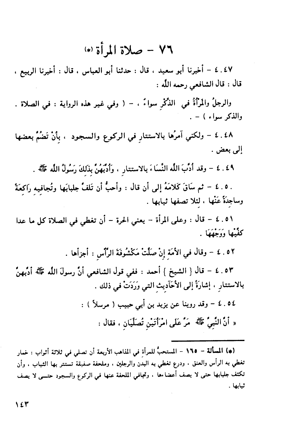 4050 - ثُمَّ سَاقَ كَلَامَهُ، إِلَى أَنْ قَالَ: «وَأُحِبُّ أَنَّ تَلُفَّ جِلْبَابَهَا، وَتُجَافِيهِ رَاكِعَةً، وَسَاجِدَةً عَنْهَا، لِئَلَّا تَصِفَهَا ثِيَابُهَا»