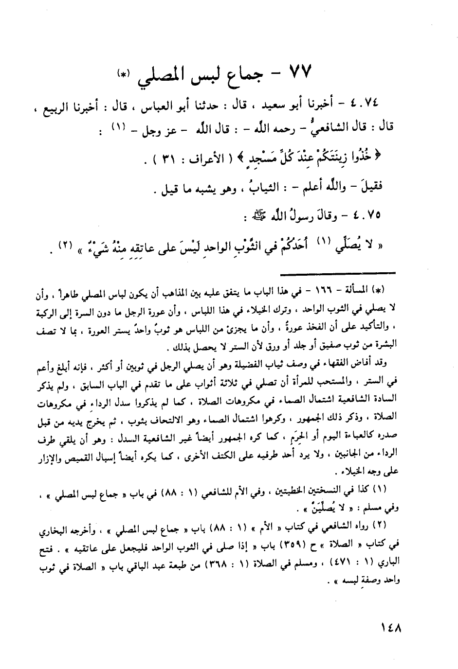 4075 - وَقَالَ رَسُولُ اللَّهِ صَلَّى اللهُ عَلَيْهِ وَسَلَّمَ: «لَا يُصَلِّ أَحَدُكُمْ فِي الثَّوْبِ الْوَاحِدِ، لَيْسَ عَلَى عَاتِقِهِ مِنْهُ شَيْءٌ» -[149]-،