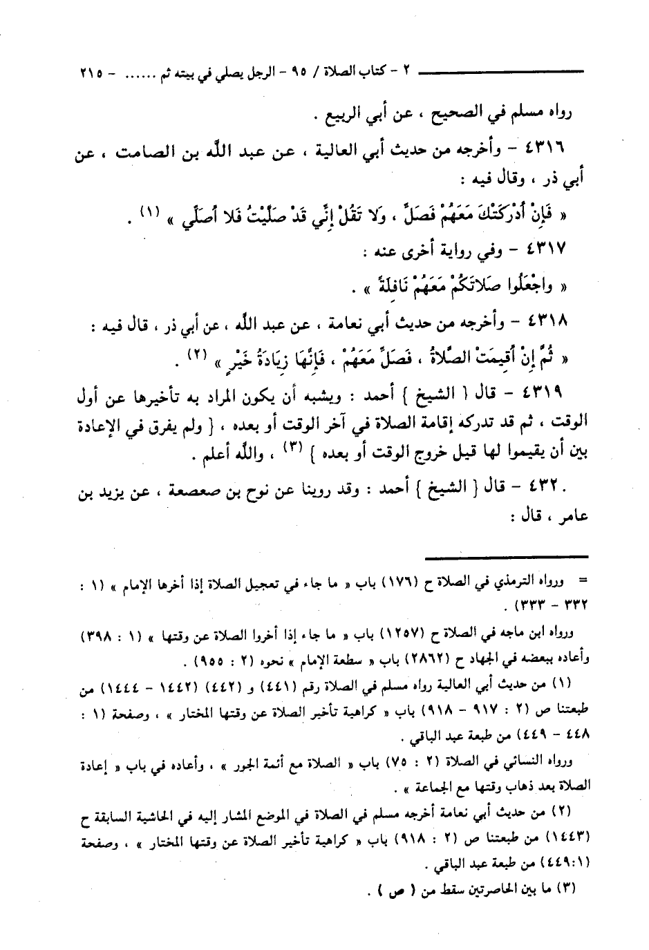 4321 - وَهَذَا يُوَافِقُ حَدِيثَ يَزِيدَ بْنِ الْأَسْوَدِ فِي إِعَادَةِ الصَّلَاةِ، وَيُخَالِفُهُ فِي الْمَكْتُوبَةِ مِنْهُمَا، وَحَدِيثُ يَزِيدَ بْنِ الْأَسْوَدِ أَشْهُرُ، وَمَعَهُ حَدِيثُ أَبِي ذَرٍّ مِنَ الْوَجْهِ الَّذِي بَيَّنَّا،