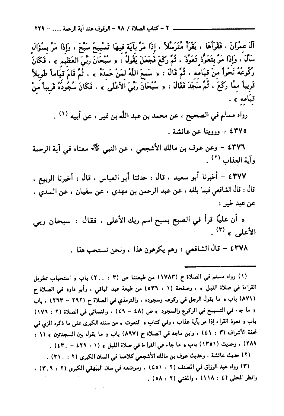 4379 - وَيُرْوَى عَنِ النَّبِيِّ صَلَّى اللهُ عَلَيْهِ وَسَلَّمَ شَيْءٌ يُشْبِهُهُ، فَكَأَنَّهُ أَرَادَ مَا رُوِّينَا فِي حَدِيثِ حُذَيْفَةَ، أَوْ أَرَادَ مَا رُوِيَ عَنْ سَعِيدِ بْنِ جُبَيْرٍ، عَنِ ابْنِ عَبَّاسٍ، أَنَّ النَّبِيَّ صَلَّى اللهُ عَلَيْهِ وَسَلَّمَ كَانَ إِذَا قَرَأَ: سَبِّحِ اسْمَ رَبِّكِ الْأَعْلَى قَالَ: «سُبْحَانَ رَبِّيَ الْأَعْلَى»،