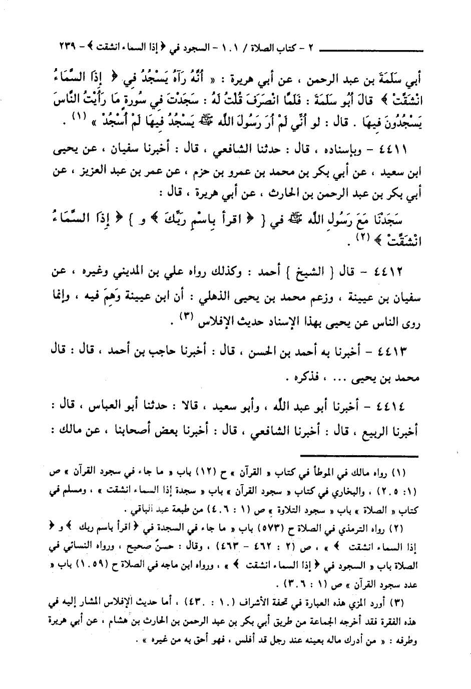 4411 - وَبِإِسْنَادِهِ قَالَ: حَدَّثَنَا الشَّافِعِيُّ قَالَ: أَخْبَرَنَا سُفْيَانُ، عَنْ يَحْيَى بْنِ سَعِيدٍ، عَنْ أَبِي بَكْرِ بْنِ مُحَمَّدِ بْنِ عَمْرِو بْنِ حَزْمٍ، عَنْ عُمَرَ بْنِ عَبْدِ الْعَزِيزِ، عَنْ أَبِي بَكْرِ بْنِ عَبْدِ الرَّحْمَنِ بْنِ الْحَارِثِ، عَنْ أَبِي هُرَيْرَةَ قَالَ: " §سَجَدْنَا مَعَ رَسُولِ اللَّهِ صَلَّى اللهُ عَلَيْهِ وَسَلَّمَ فِي: اقْرَأْ بِاسْمِ رَبِّكَ، وَإِذَا السَّمَاءُ انْشَقَّتْ "