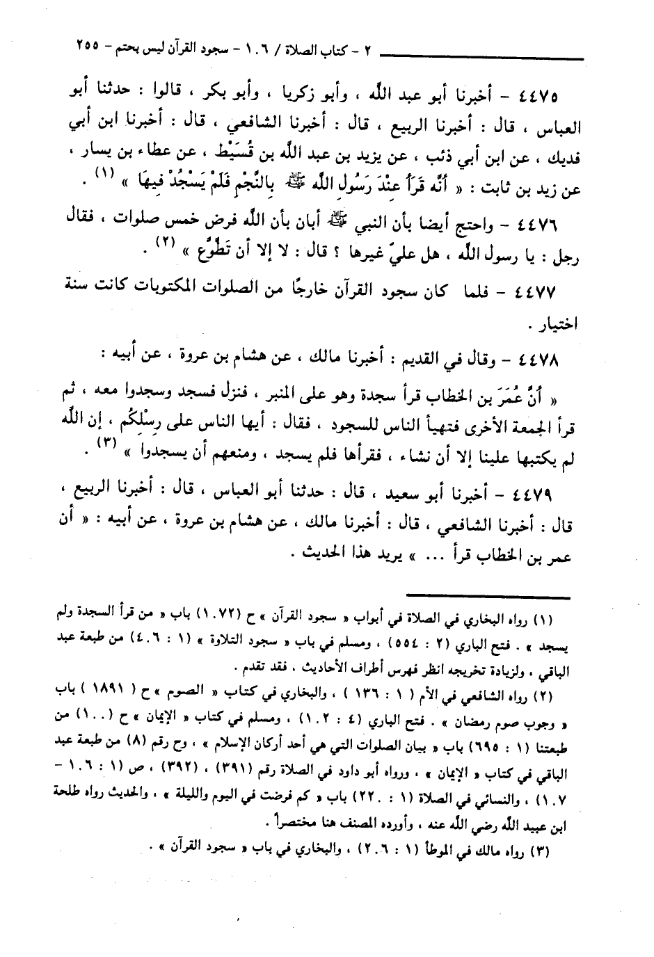 4475 - أَخْبَرَنَا أَبُو عَبْدِ اللَّهِ، وَأَبُو زَكَرِيَّا، وَأَبُو بَكْرٍ، قَالُوا: حَدَّثَنَا أَبُو الْعَبَّاسِ قَالَ: أَخْبَرَنَا الرَّبِيعُ قَالَ: أَخْبَرَنَا الشَّافِعِيُّ قَالَ: أَخْبَرَنَا ابْنُ أَبِي فُدَيْكٍ، عَنِ ابْنِ أَبِي ذِئْبٍ، عَنْ يَزِيدَ بْنِ عَبْدِ اللَّهِ بْنِ قُسَيْطٍ، عَنْ عَطَاءِ بْنِ يَسَارٍ، عَنْ زَيْدِ بْنِ ثَابِتٍ، أَنَّهُ «§قَرَأَ عِنْدَ رَسُولِ اللَّهِ صَلَّى اللهُ عَلَيْهِ وَسَلَّمَ، بِالنَّجْمِ، فَلَمْ يَسْجُدْ فِيهَا»،