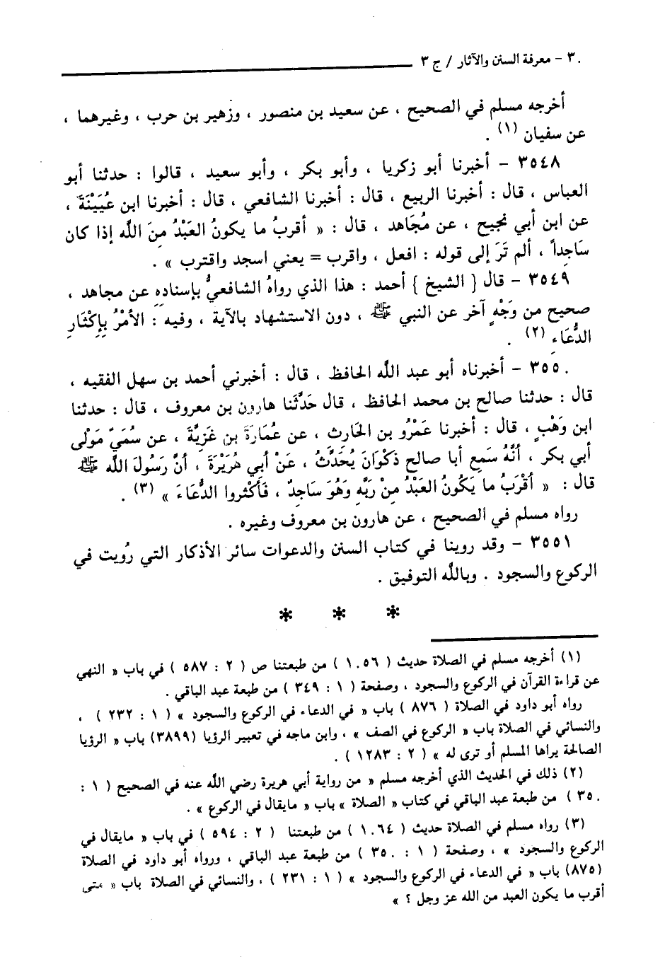 3551 - وَقَدْ رَوَيْنَا فِي كِتَابِ السُّنَنِ وَالدَّعَوَاتِ سَائِرَ الْأَذْكَارِ، الَّتِي رُوِيَتْ فِي الرُّكُوعِ وَالسُّجُودِ، وَبِاللَّهِ التَّوْفِيقُ