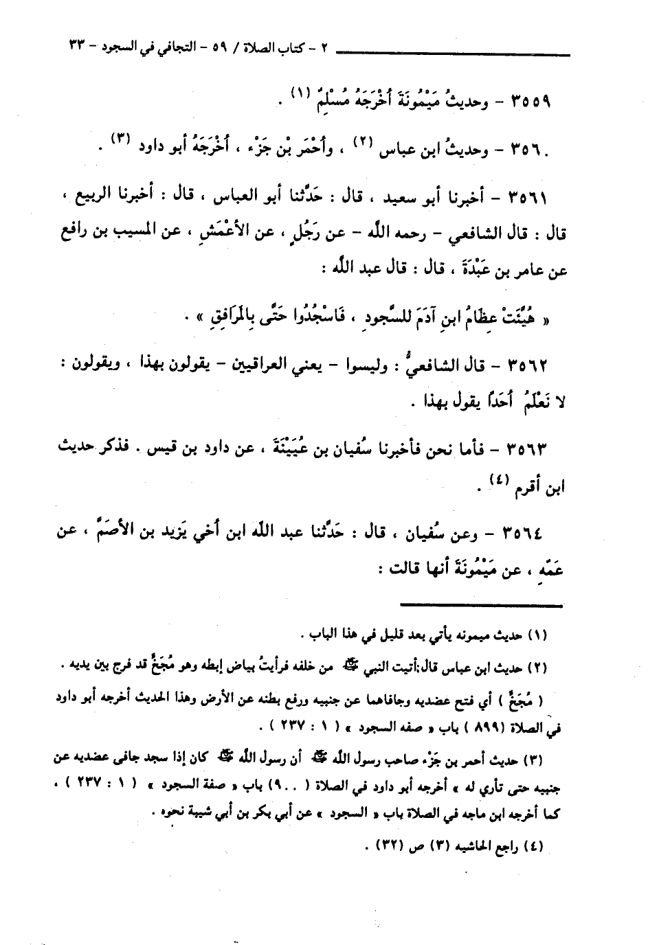 3561 - أَخْبَرَنَا أَبُو سَعِيدٍ قَالَ: حَدَّثَنَا أَبُو الْعَبَّاسِ قَالَ: أَخْبَرَنَا الرَّبِيعُ قَالَ: قَالَ الشَّافِعِيُّ رَحِمَهُ اللَّهُ عَنْ رَجُلٍ، عَنِ الْأَعْمَشِ، عَنِ الْمُسَيِّبِ بْنِ رَافِعٍ، عَنْ عَامِرِ بْنِ عَبْدَةَ قَالَ: قَالَ عَبْدُ اللَّهِ: «§هُيِّئَتْ عِظَامُ ابْنِ آدَمَ لِلسُّجُودِ، فَاسْجُدُوا حَتَّى بِالْمَرَافِقِ»