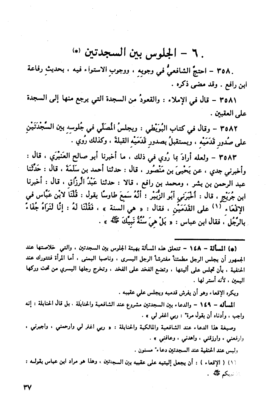 3581 - قَالَ فِي الْإِمْلَاءِ: وَالْقُعُودُ مِنَ السَّجْدَةِ، الَّتِي يُرْجَعُ مِنْهَا إِلَى السَّجْدَةِ عَلَى الْعَقِبَيْنِ،
