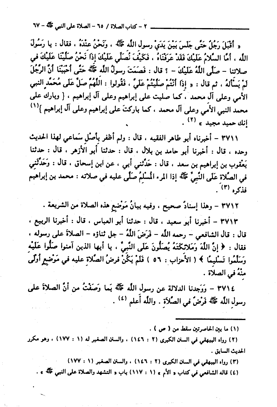 3713 - أَخْبَرَنَا أَبُو سَعِيدٍ قَالَ: حَدَّثَنَا أَبُو الْعَبَّاسِ قَالَ: أَخْبَرَنَا الرَّبِيعُ قَالَ: قَالَ الشَّافِعِيُّ رَحِمَهُ اللَّهُ: " §فَرَضَ اللَّهُ جَلَّ ثَنَاؤُهُ، الصَّلَاةَ عَلَى رَسُولِهِ، فَقَالَ: إِنَّ اللَّهَ وَمَلَائِكَتَهُ يُصَلُّونَ عَلَى النَّبِيِّ، يَا أَيُّهَا الَّذِينَ آمَنُوا صَلُّوا عَلَيْهِ وَسَلَّمُوا تَسْلِيمًا، فَلَمْ يَكُنْ فَرْضُ الصَّلَاةِ عَلَيْهِ فِي مَوْضِعٍ أَوْلَى مِنْهُ فِي الصَّلَاةِ "،