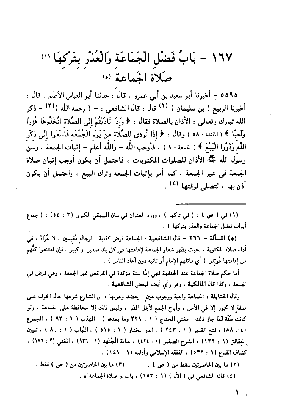 5598 - فَأَشْبَهَ مَا وَصَفْتُ مِنَ الْكِتَابِ وَالسُّنَّةِ أَنْ لَا يَحِلَّ تَرْكُ أَنْ يُصَلِّيَ كُلَّ مَكْتُوبَةٍ فِي جَمَاعَةٍ، حَتَّى لَا يَخْلُوا جَمَاعَةٌ مُقِيمُونَ وَلَا مُسَافِرُونَ مِنْ أَنْ تُصَلَّى فِيهِمْ صَلَاةُ الْجَمَاعَةِ "