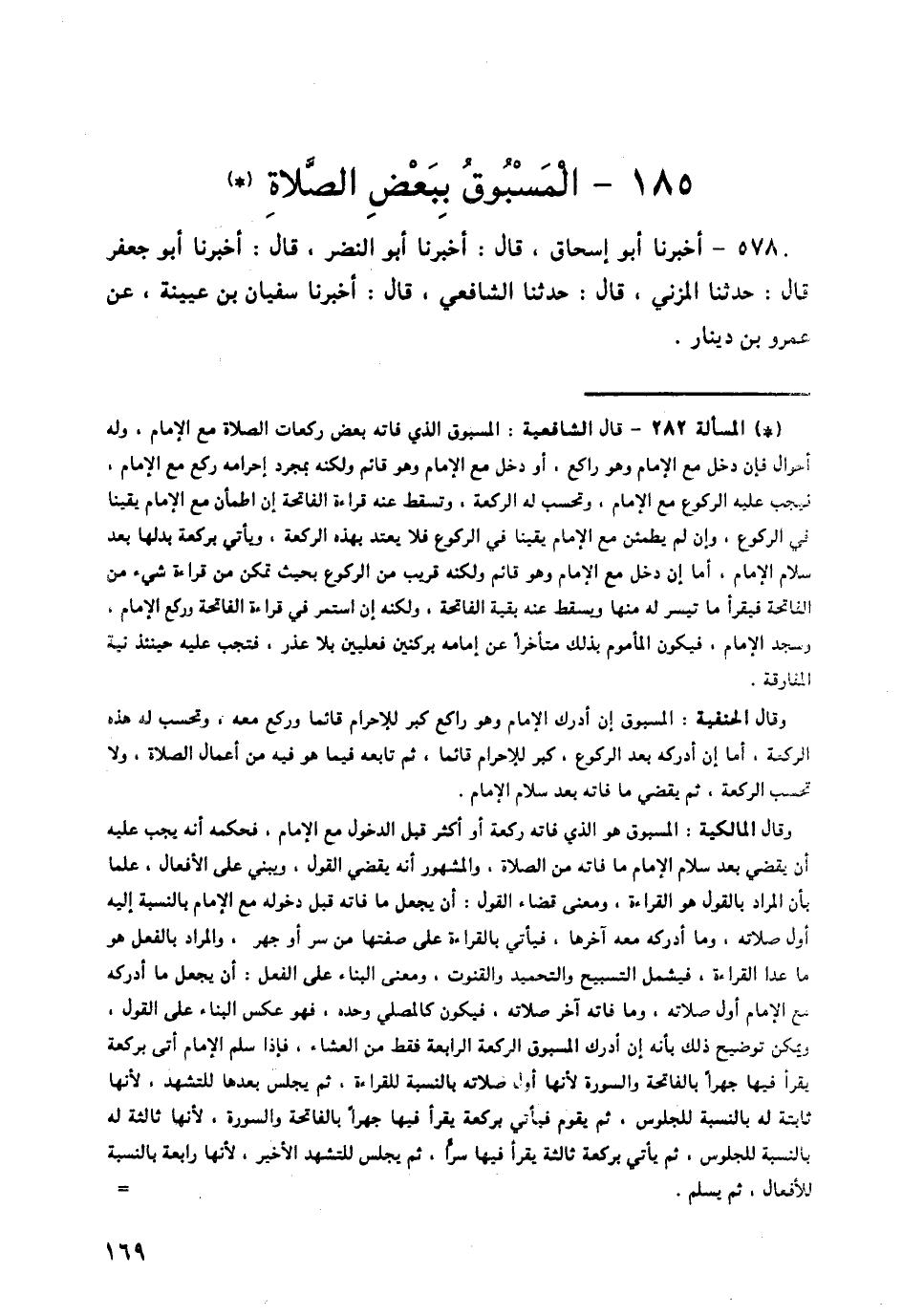 5780 - أَخْبَرَنَا أَبُو إِسْحَاقَ قَالَ: أَخْبَرَنَا أَبُو النَّضْرِ قَالَ: أَخْبَرَنَا أَبُو جَعْفَرٍ قَالَ: حَدَّثَنَا الْمُزَنِيُّ قَالَ: حَدَّثَنَا الشَّافِعِيُّ قَالَ: أَخْبَرَنَا سُفْيَانُ بْنُ عُيَيْنَةَ، عَنْ عَمْرِو بْنِ دِينَارٍ -[170]-، عَنْ عَطَاءِ بْنِ أَبِي رَبَاحٍ قَالَ: §" كَانَ الرَّجُلُ إِذَا جَاءَ وَقَدْ صَلَّى رَسُولُ اللَّهِ صَلَّى اللهُ عَلَيْهِ وَسَلَّمَ شَيْئًا مِنْ صَلَاتِهِ سَأَلَ فَإِذَا أُخْبِرَ كَمْ سُبِقَ بِهِ صَلَّى الَّذِي سُبِقَ بِهِ، ثُمَّ دَخَلَ مَعَ رَسُولِ اللَّهِ صَلَّى اللهُ عَلَيْهِ وَسَلَّمَ فِي صَلَاتِهِ، فَأَتَى ابْنُ مَسْعُودٍ فَدَخَلَ مَعَ النَّبِيِّ صَلَّى اللهُ عَلَيْهِ وَسَلَّمَ، وَلَمْ يَسْأَلْ، فَلَمَّا صَلَّى النَّبِيُّ صَلَّى اللهُ عَلَيْهِ وَسَلَّمَ قَامَ فَقَضَى مَا بَقِيَ عَلَيْهِ، فَقَالَ النَّبِيُّ صَلَّى اللهُ عَلَيْهِ وَسَلَّمَ: إِنَّ ابْنَ مَسْعُودٍ قَدْ بَيَّنَ لَكُمْ سُنَّةً فَاتَّبِعُوهَا " قَالَ سُفْيَانُ: وَقَالَ غَيْرُ عَمْرِو بْنِ دِينَارٍ هُوَ مُعَاذٌ
