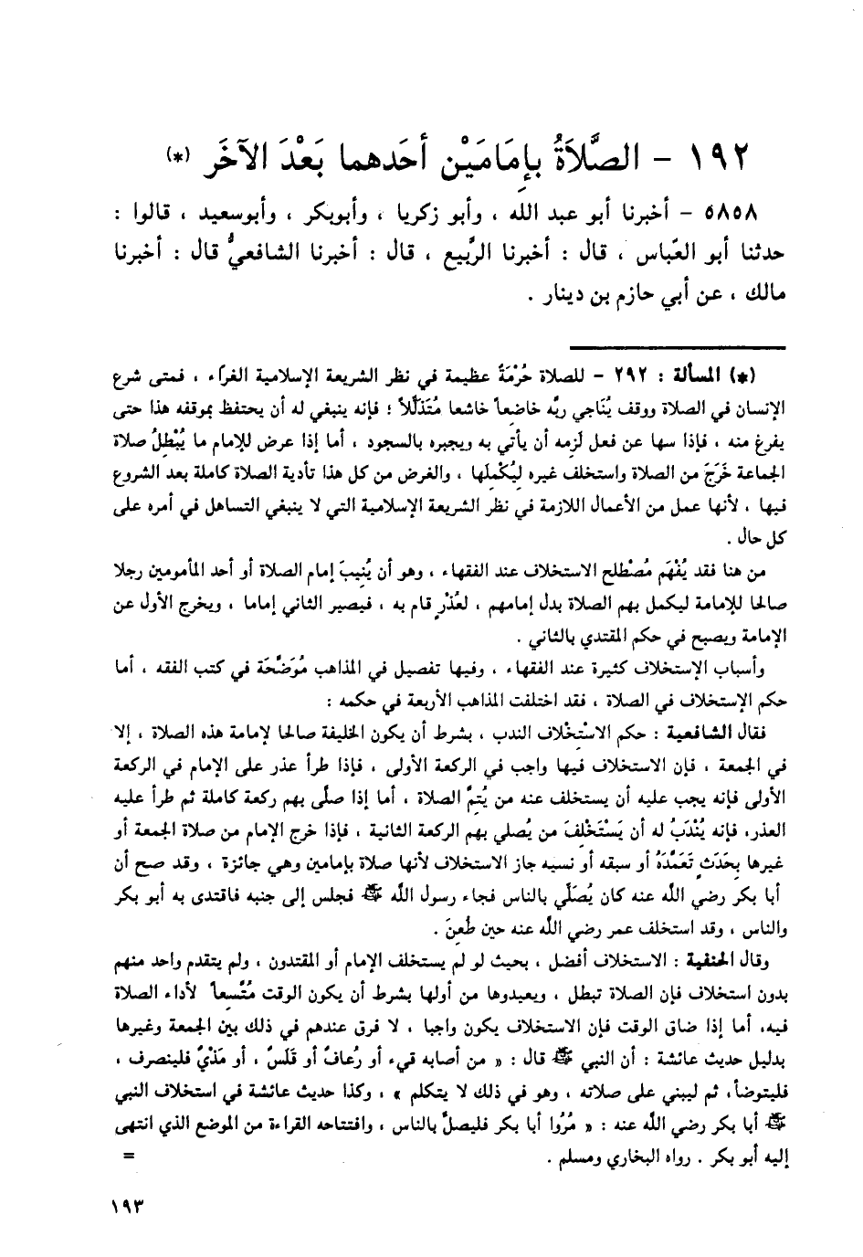 §الصَّلَاةُ بِإِمَامَيْنِ أَحَدُهُمَا بَعْدَ الْآخَرِ