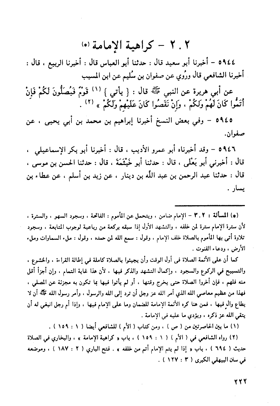 5944 - أَخْبَرَنَا أَبُو سَعِيدٍ قَالَ: حَدَّثَنَا أَبُو الْعَبَّاسِ قَالَ: أَخْبَرَنَا الرَّبِيعُ قَالَ: أَخْبَرَنَا الشَّافِعِيُّ قَالَ وَرُوِيَ عَنْ صَفْوَانَ بْنِ سُلَيْمٍ، عَنِ ابْنِ الْمُسَيِّبِ، عَنْ أَبِي هُرَيْرَةَ، عَنِ النَّبِيِّ صَلَّى اللهُ عَلَيْهِ وَسَلَّمَ قَالَ: § «يَأْتِي قَوْمٌ فَيُصَلُّونَ لَكُمْ. فَإِنْ أَتَمُّوا كَانَ لَهُمْ وَلَكُمْ، وَإِنْ نَقَصُوا كَانَ عَلَيْهِمْ وَلَكُمْ»