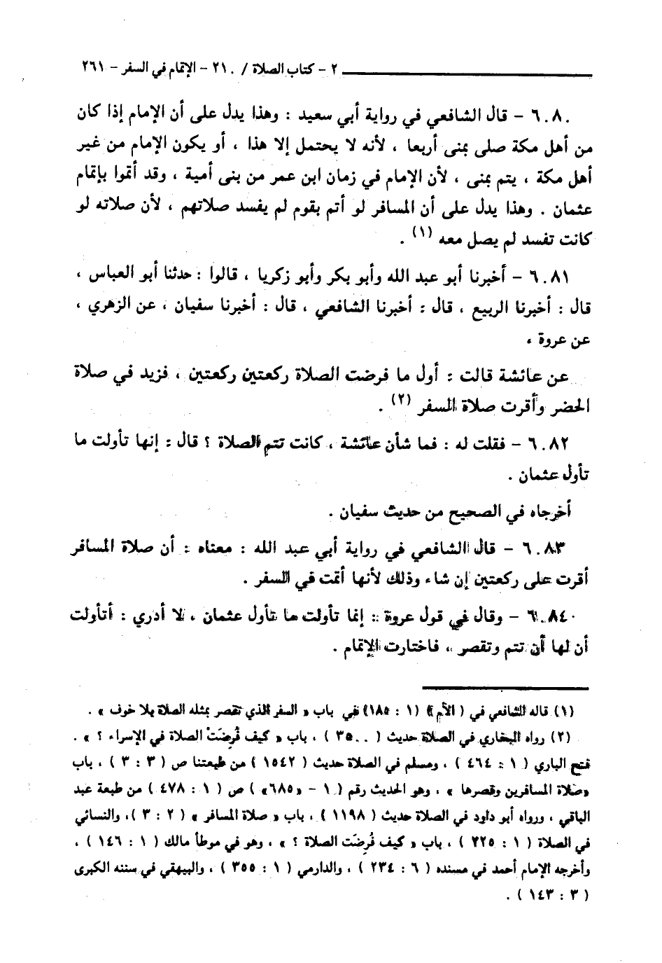 6081 - أَخْبَرَنَا أَبُو عَبْدِ اللَّهِ، وَأَبُو بَكْرٍ، وَأَبُو زَكَرِيَّا قَالُوا: حَدَّثَنَا أَبُو الْعَبَّاسِ قَالَ: أَخْبَرَنَا الرَّبِيعُ قَالَ: أَخْبَرَنَا الشَّافِعِيُّ قَالَ: أَخْبَرَنَا سُفْيَانُ، عَنِ الزُّهْرِيِّ، عَنْ عُرْوَةَ، عَنْ عَائِشَةَ قَالَتْ: «§أَوَّلُ مَا فُرِضَتِ الصَّلَاةُ رَكْعَتَيْنِ رَكْعَتَيْنِ، فَزِيدَ فِي صَلَاةِ الْحَضَرِ وَأُقِرَّتْ صَلَاةُ السَّفَرِ»