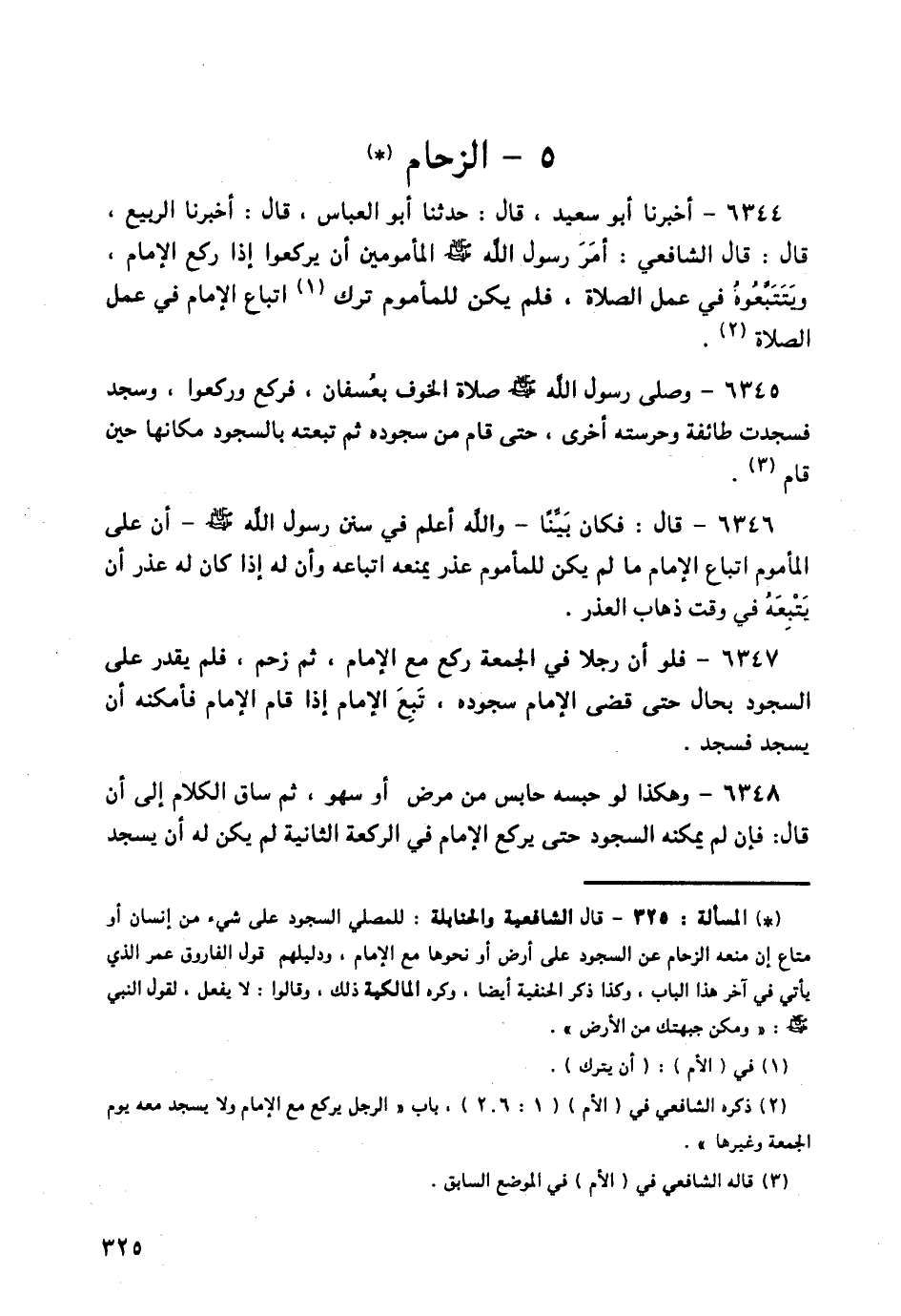 6344 - أَخْبَرَنَا أَبُو سَعِيدٍ قَالَ: حَدَّثَنَا أَبُو الْعَبَّاسِ قَالَ: أَخْبَرَنَا الرَّبِيعُ قَالَ: قَالَ الشَّافِعِيُّ: § «أَمَرَ رَسُولُ اللَّهِ صَلَّى اللهُ عَلَيْهِ وَسَلَّمَ الْمَأْمُومِينَ أَنْ يَرْكَعُوا إِذَا رَكَعَ الْإِمَامُ، وَيَتَّبِعُوهُ فِي عَمَلِ الصَّلَاةِ» فَلَمْ يَكُنْ لِلْمَأْمُومِ تَرْكِ اتِّبَاعِ الْإِمَامِ فِي عَمَلِ الصَّلَاةِ