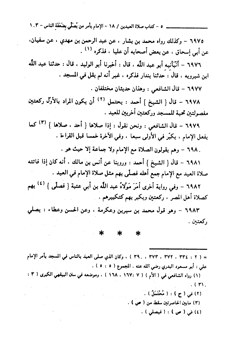 6982 - وَفِي رِوَايَةٍ أُخْرَى أَمَرَ مَوْلَاهُ عَبْدَ اللَّهِ بْنَ أَبِي عُتْبَةَ فَصَلَّى بِهِمْ كَصَلَاةِ أَهْلِ الْمِصْرِ، رَكْعَتَيْنِ وَيُكَبِّرُ بِهِمْ كَتَكْبِيرِهِمْ.