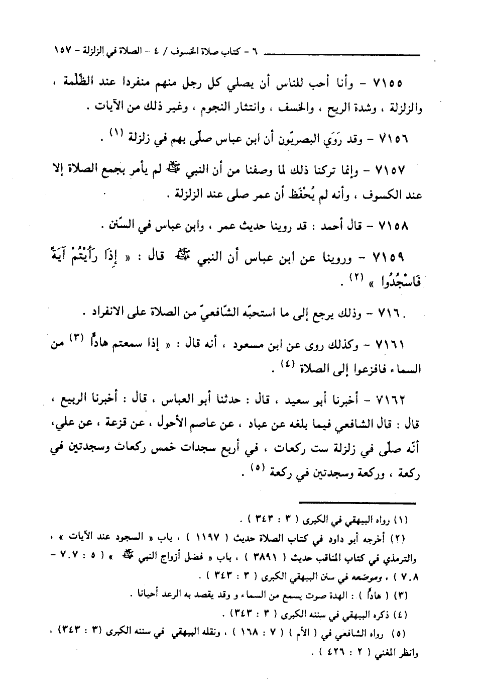 7162 - أَخْبَرَنَا أَبُو سَعِيدٍ قَالَ: حَدَّثَنَا أَبُو الْعَبَّاسِ قَالَ: أَخْبَرَنَا الرَّبِيعُ قَالَ: قَالَ الشَّافِعِيُّ فِيمَا بَلَغَهُ عَنْ عَبَّادٍ، عَنْ عَاصِمٍ الْأَحْوَلِ، عَنْ قَزَعَةَ، عَنْ عَلِيٍّ، أَنَّهُ § «صَلَّى فِي زَلْزَلَةٍ سِتَّ رَكَعَاتٍ فِي أَرْبَعِ سَجَدَاتٍ خَمْسَ رَكَعَاتٍ وَسَجْدَتَيْنِ فِي رَكْعَةٍ، وَرَكْعَةً وَسَجْدَتَيْنِ فِي رَكْعَةٍ» -[158]-