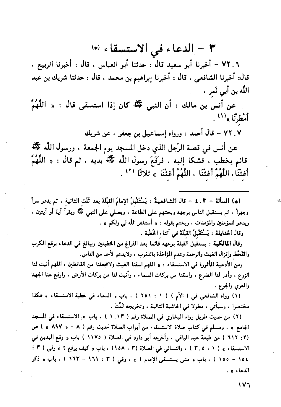 7206 - أَخْبَرَنَا أَبُو سَعِيدٍ قَالَ: حَدَّثَنَا أَبُو الْعَبَّاسِ قَالَ: أَخْبَرَنَا الرَّبِيعُ قَالَ: أَخْبَرَنَا الشَّافِعِيُّ قَالَ: أَخْبَرَنَا إِبْرَاهِيمُ بْنُ مُحَمَّدٍ قَالَ: حَدَّثَنَا شَرِيكُ بْنُ عَبْدِ اللَّهِ بْنِ أَبِي نَمِرٍ، عَنْ أَنَسِ بْنِ مَالِكٍ، أَنَّ النَّبِيَّ صَلَّى اللهُ عَلَيْهِ وَسَلَّمَ كَانَ إِذَا اسْتَسْقَى قَالَ: § «اللَّهُمَّ أَمْطِرْنَا»