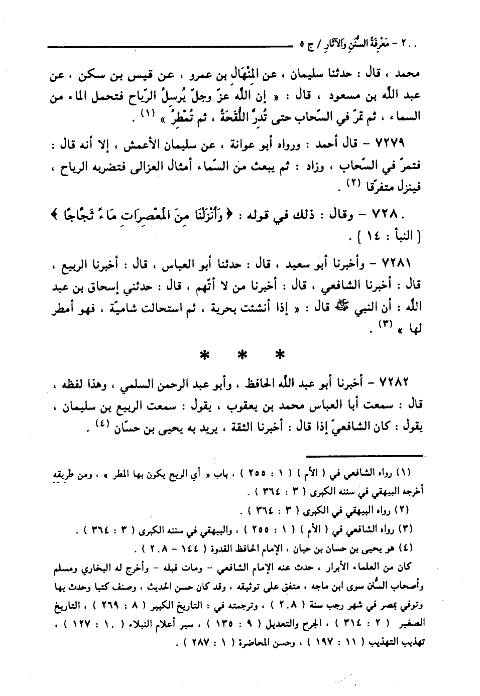7281 - وَأَخْبَرَنَا أَبُو سَعِيدٍ قَالَ: حَدَّثَنَا أَبُو الْعَبَّاسِ قَالَ: أَخْبَرَنَا الرَّبِيعُ قَالَ: أَخْبَرَنَا الشَّافِعِيُّ قَالَ: أَخْبَرَنَا مَنْ، لَا أَتَّهِمُ، قَالَ حَدَّثَنِي إِسْحَاقُ بْنُ عَبْدِ اللَّهِ، أَنَّ النَّبِيَّ صَلَّى اللهُ عَلَيْهِ وَسَلَّمَ قَالَ: § «إِذَا أُنْشِئَتْ بَحْرِيَّةٌ ثُمَّ اسْتَحَالَتْ شَامِيَّةً فَهُوَ أَمْطَرُ لَهَا»