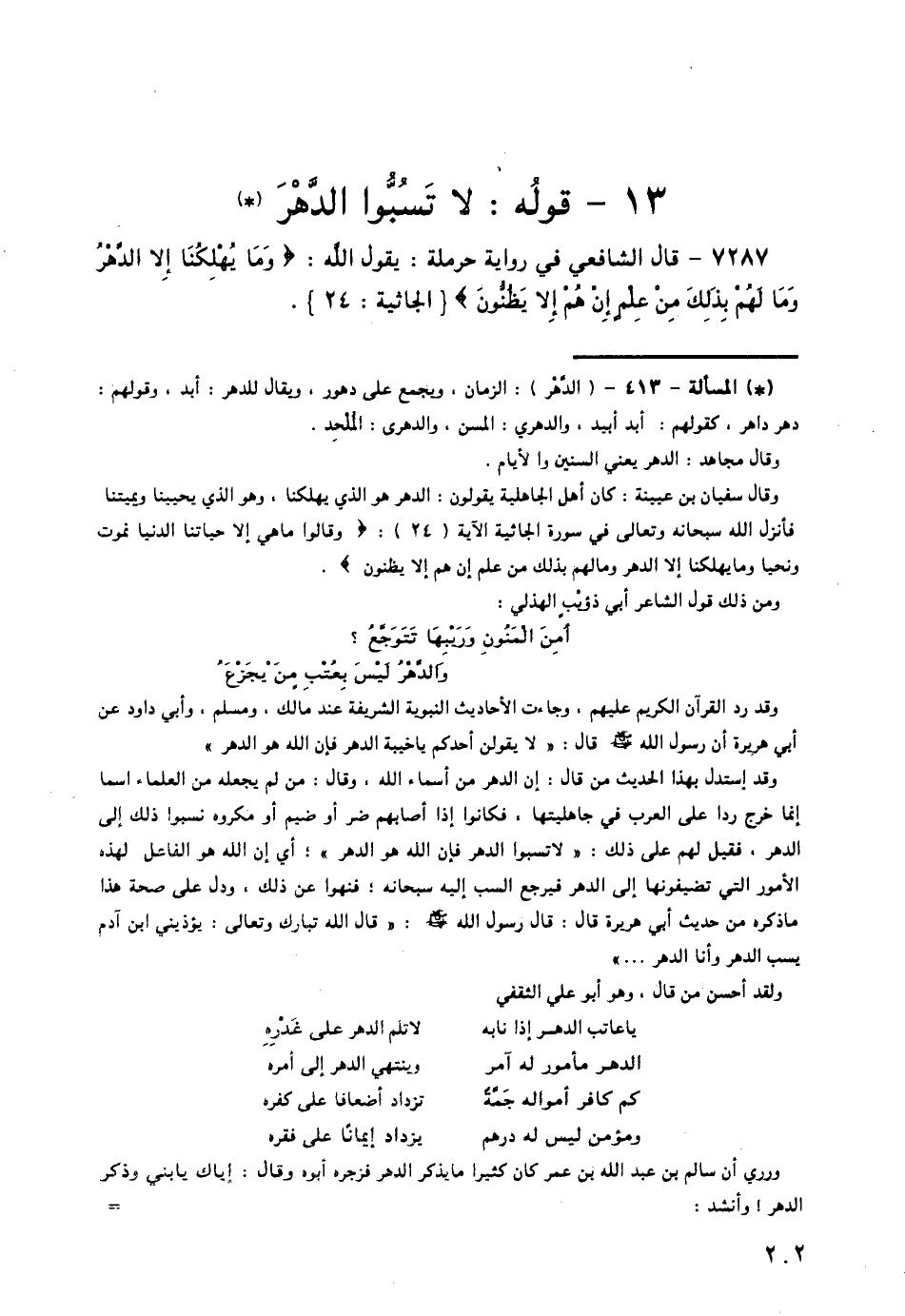 7287 - قَالَ الشَّافِعِيُّ فِي رِوَايَةِ حَرْمَلَةَ: يَقُولُ اللَّهُ: {وَمَا يُهْلِكُنَا إِلَّا الدَّهْرُ وَمَا لَهُمْ بِذَلِكَ مِنْ عِلْمٍ إِنْ هُمْ إِلَّا يَظُنُّونَ} [الجاثية: 24]