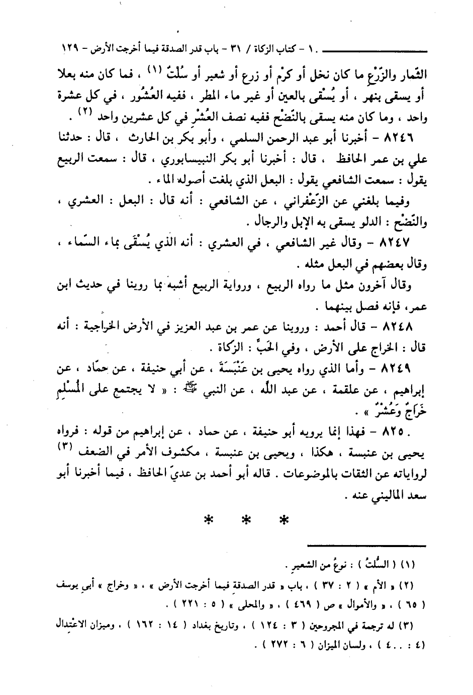 8248 - قَالَ أَحْمَدُ: وَرُوِّينَا عَنْ عُمَرَ بْنِ عَبْدِ الْعَزِيزِ فِي الْأَرْضِ الْخَرَاجِيَّةِ: أَنَّهُ قَالَ: الْخَرَاجُ عَلَى الْأَرْضِ، وَفِي الْحَبُّ: الزَّكَاةُ،