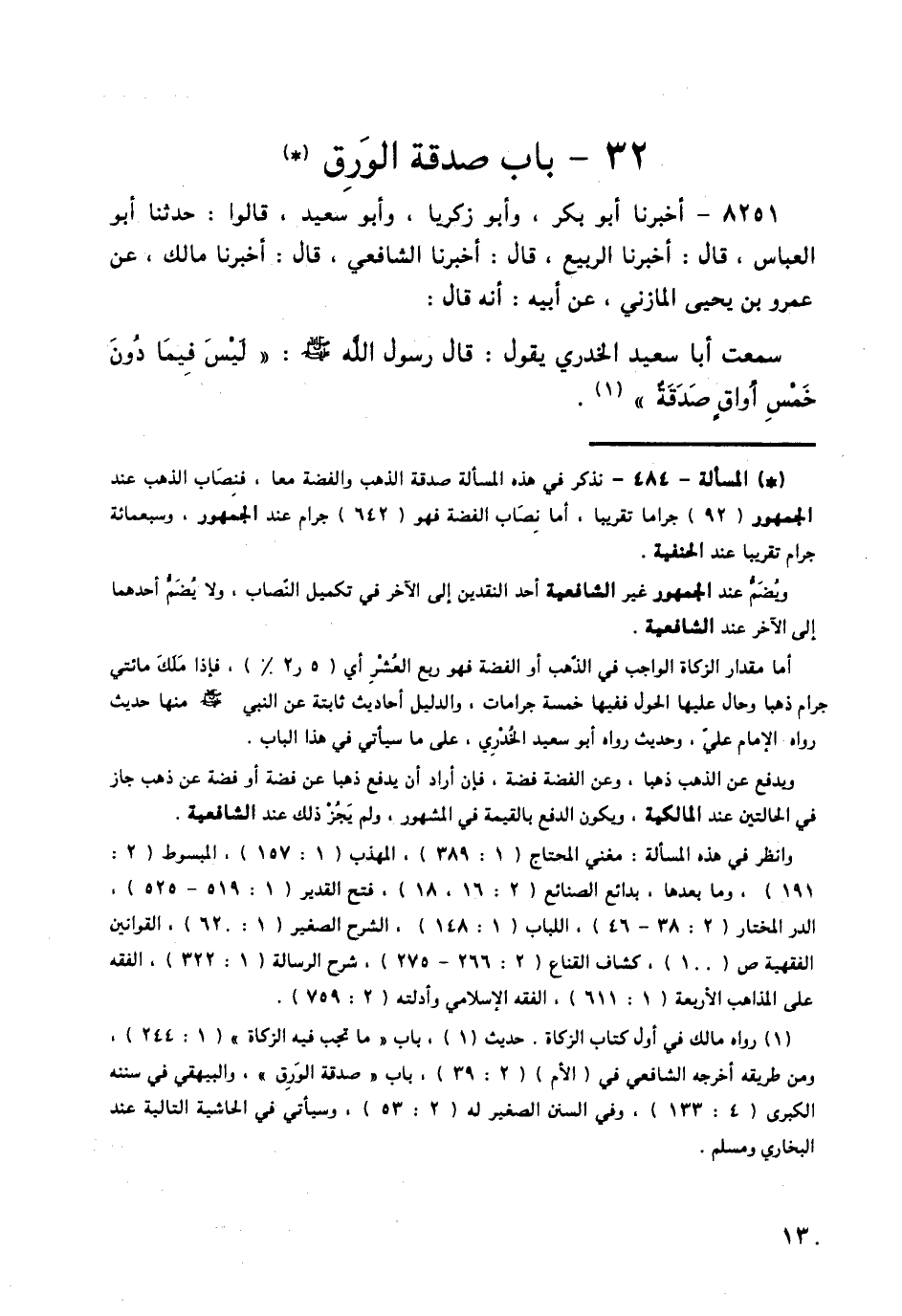 8251 - أَخْبَرَنَا أَبُو بَكْرٍ، وَأَبُو زَكَرِيَّا، وَأَبُو سَعِيدٍ، قَالُوا: حَدَّثَنَا أَبُو الْعَبَّاسِ قَالَ: أَخْبَرَنَا الرَّبِيعُ قَالَ: أَخْبَرَنَا الشَّافِعِيُّ قَالَ: أَخْبَرَنَا مَالِكٌ، عَنْ عَمْرِو بْنِ يَحْيَى الْمَازِنِيِّ، عَنْ أَبِيهِ: أَنَّهُ قَالَ: سَمِعْتُ أَبَا سَعِيدٍ الْخُدْرِيَّ، يَقُولُ: قَالَ رَسُولُ اللَّهِ صَلَّى اللهُ عَلَيْهِ وَسَلَّمَ: «§لَيْسَ فِيمَا دُونَ خَمْسِ أَوَاقٍ صَدَقَةٌ» -[131]-،