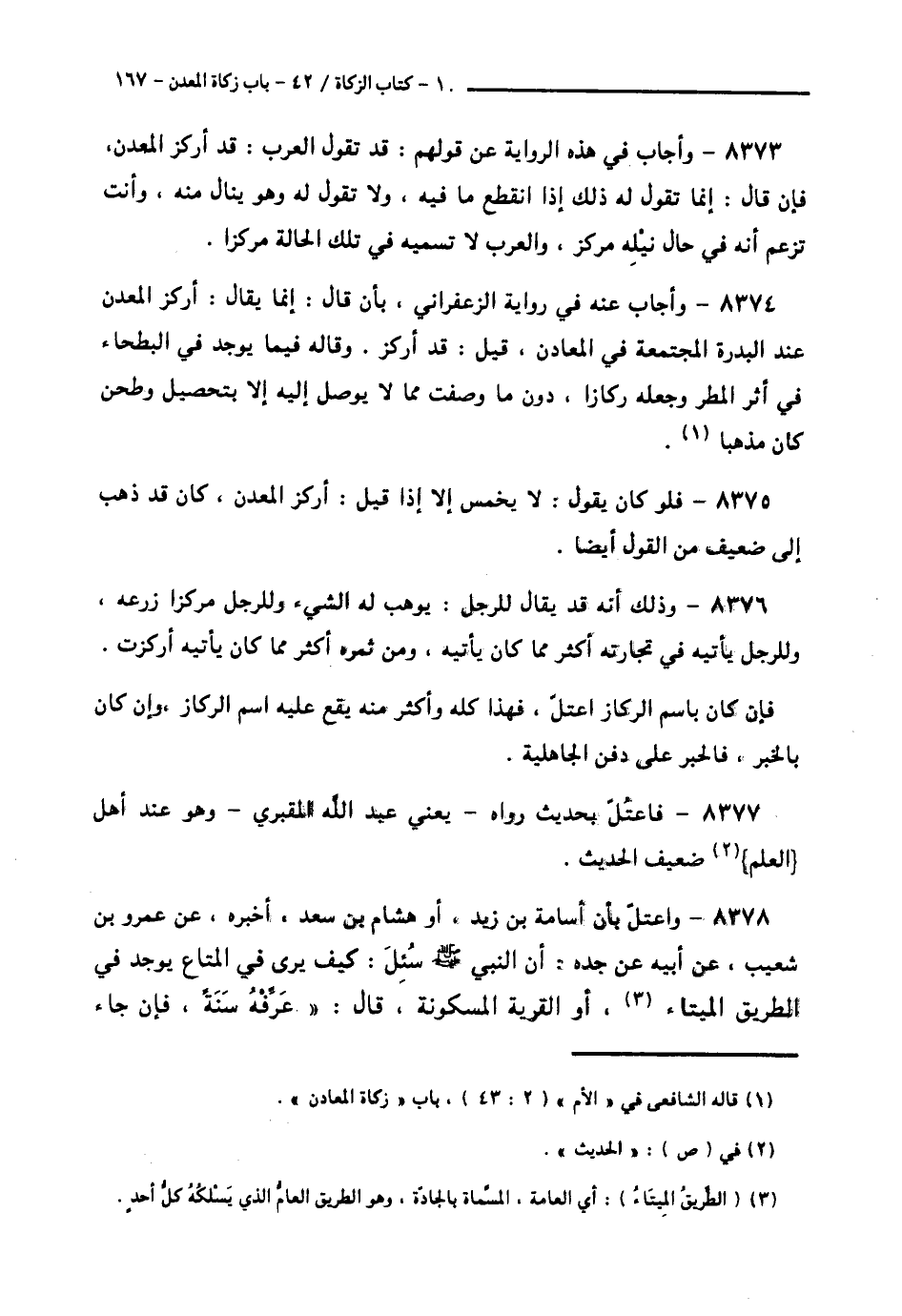 8388 - ثُمَّ حَكَى عَنْ بَعْضِ النَّاسِ: أَنَّ الْمَعْدِنَ رِكَازٌ مِنْ دَفْنِ الْجَاهِلِيَّةِ، لِأَنَّهُ يُقَالُ: أَرْكَزَ الْمَعْدِنُ إِذَا خَرَجَ مِنْهُ شَيْءٌ،