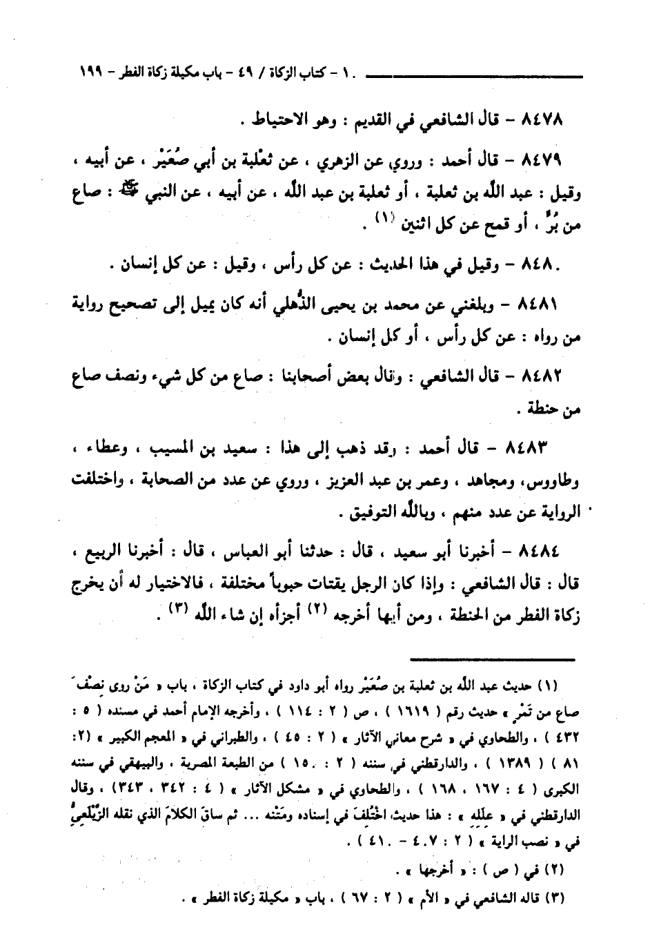 8485 - فَإِنْ كَانَ يَقْتَاتُ حِنْطَةً، فَأَرَادَ أَنْ يُخْرِجَ زَبِيبًا أَوْ تَمْرًا أَوْ شَعِيرًا، كَرِهْتُ ذَلِكَ لَهُ، وَأَحْبَبْتُ لَوْ أَخْرَجَهُ أَنْ يُعِيدَ فَيُخْرِجَ حِنْطَةً، لِأَنَّ الْأَغْلَبَ مِنَ الْقُوتِ كَانَ فِي زَمَانِ النَّبِيِّ صَلَّى اللهُ عَلَيْهِ وَسَلَّمَ بِالْمَدِينَةِ التَّمْرُ، وَكَانَ مِنْ يَقْتَاتُ بِالشَّعِيرِ قَلِيلًا، وَلَعَلَّهُ لَمْ يَكُنْ بِهَا أَحَدٌ يَقْتَاتُ حِنْطَةً، وَلَعَلَّ الْحِنْطَةَ كَانَتْ بِهَا شَبِيهًا بِالطُّرْفَةِ، فَفَرَضَ النَّبِيُّ صَلَّى اللهُ عَلَيْهِ وَسَلَّمَ زَكَاةَ الْفِطْرِ مِنْ قُوتِهِمْ