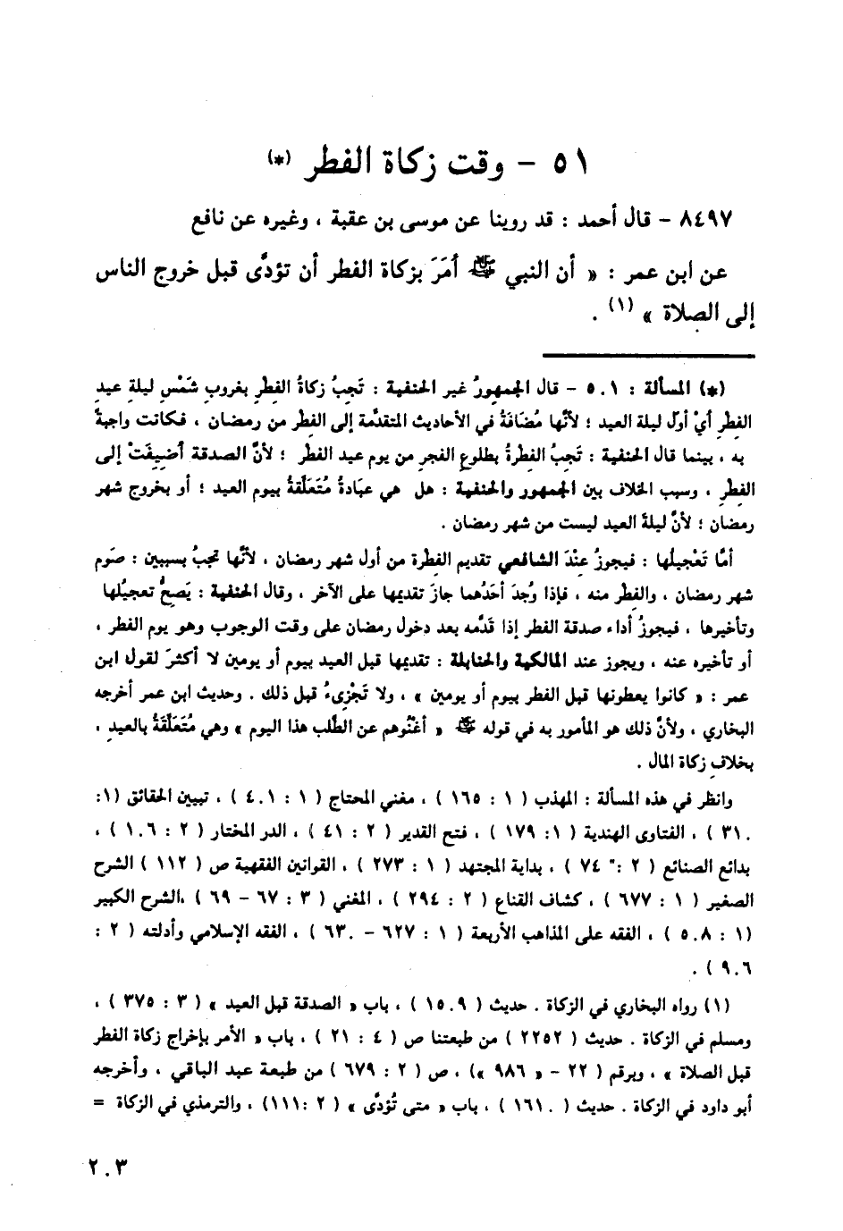 8497 - قَالَ أَحْمَدُ: قَدْ رُوِّينَا عَنْ مُوسَى بْنِ عُقْبَةَ، وَغَيْرِهِ، عَنْ نَافِعٍ، عَنِ ابْنِ عُمَرَ: «أَنَّ النَّبِيَّ صَلَّى اللهُ عَلَيْهِ وَسَلَّمَ §أَمَرَ بِزَكَاةِ الْفِطْرِ أَنْ تُؤَدَّى قَبْلَ خُرُوجِ النَّاسِ إِلَى الصَّلَاةِ» -[204]-.