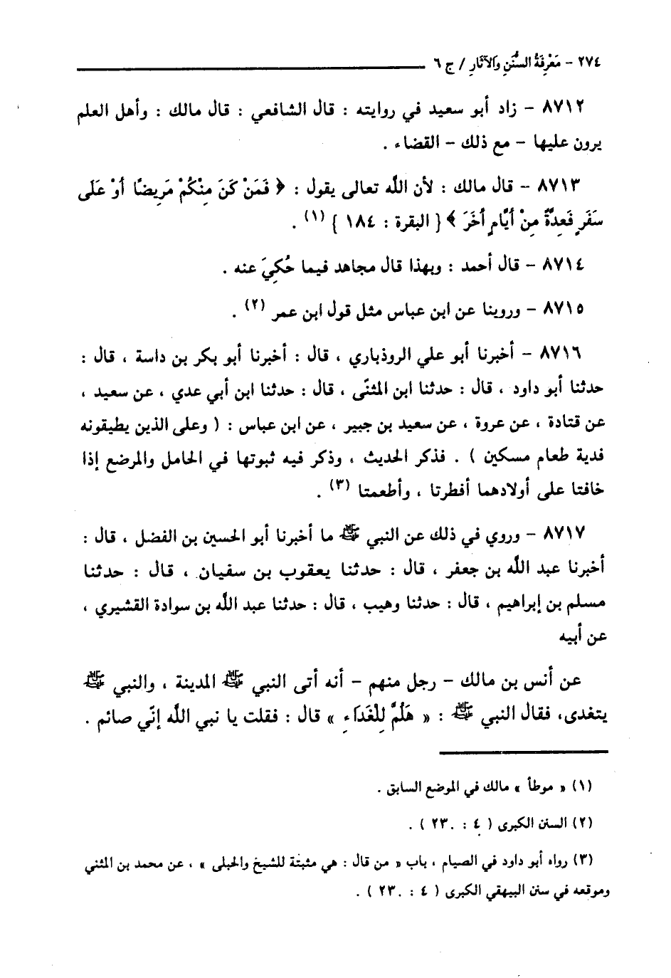 كتاب معرفة السنن والآثار (اسم الجزء: 6)