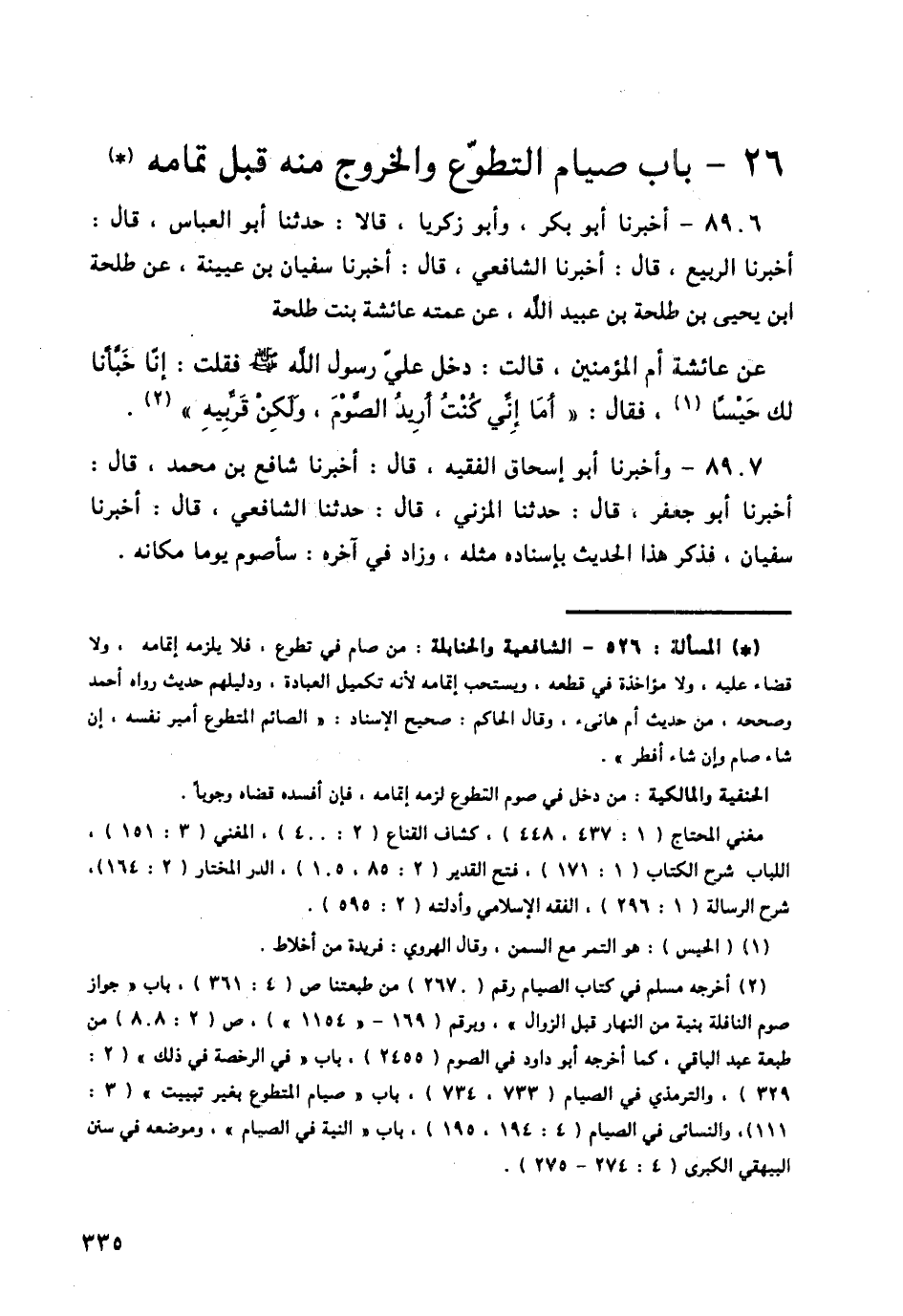 8906 - أَخْبَرَنَا أَبُو بَكْرٍ، وَأَبُو زَكَرِيَّا قَالَا: حَدَّثَنَا أَبُو الْعَبَّاسِ قَالَ: أَخْبَرَنَا الرَّبِيعُ قَالَ: أَخْبَرَنَا الشَّافِعِيُّ قَالَ: أَخْبَرَنَا سُفْيَانُ بْنُ عُيَيْنَةَ، عَنْ طَلْحَةَ بْنِ يَحْيَى بْنِ طَلْحَةَ بْنِ عُبَيْدِ اللَّهِ، عَنْ عَمَّتِهِ عَائِشَةَ بِنْتِ طَلْحَةَ، عَنْ عَائِشَةَ أُمِّ الْمُؤْمِنِينَ قَالَتْ: §دَخَلَ عَلَيَّ رَسُولُ اللَّهِ صَلَّى اللهُ عَلَيْهِ وَسَلَّمَ، فَقُلْتُ: إِنَّا خَبَّأْنَا لَكَ حَيْسًا، فَقَالَ: «أَمَا إِنِّي كُنْتُ أُرِيدُ الصَّوْمَ، وَلَكِنْ قَرِّبِيهِ»،