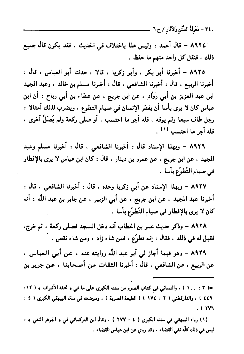 8926 - وَبِهَذَا الْإِسْنَادِ قَالَ: أَخْبَرَنَا الشَّافِعِيُّ قَالَ: أَخْبَرَنَا مُسْلِمٌ، وَعَبْدُ الْمَجِيدِ، عَنِ ابْنِ جُرَيْجٍ، عَنْ عَمْرِو بْنِ دِينَارٍ قَالَ: «كَانَ ابْنُ عَبَّاسٍ §لَا يَرَى بِالْإِفْطَارِ فِي صِيَامِ التَّطَوُّعِ بَأْسًا»