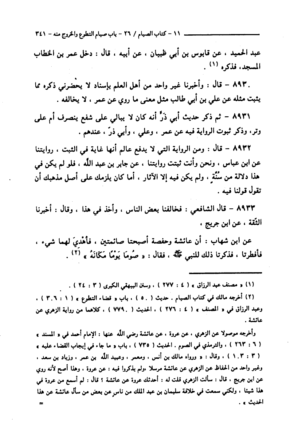 8933 - قَالَ الشَّافِعِيُّ: فَخَالَفَنَا بَعْضُ النَّاسِ، وَأَخَذَ فِي هَذَا، وَقَالَ: أَخْبَرَنَا الثِّقَةُ، عَنِ ابْنِ جُرَيْجٍ، عَنِ ابْنِ شِهَابِ: أَنَّ §عَائِشَةَ، وَحَفْصَةَ أَصْبَحَتَا صَائِمَتَيْنِ، فَأُهْدِيَ لَهُمَا شَيْءٌ فَأَفْطَرَتَا، فَذَكَرَتَا ذَلِكَ لِلنَّبِيِّ صَلَّى اللهُ عَلَيْهِ وَسَلَّمَ، فَقَالَ: «صُومَا يَوْمًا مَكَانَهُ» -[342]-