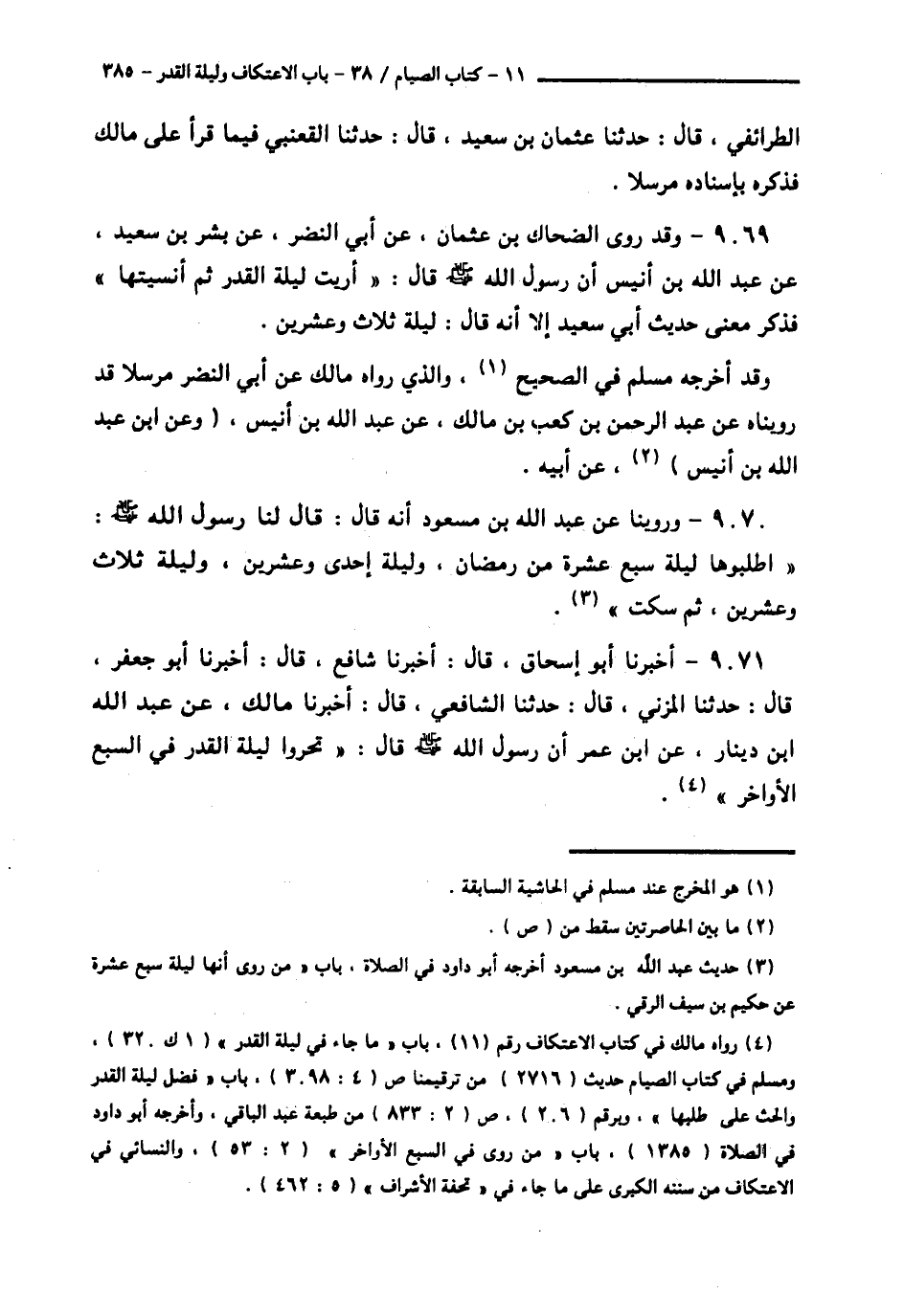 9071 - أَخْبَرَنَا أَبُو إِسْحَاقَ قَالَ: أَخْبَرَنَا شَافِعٌ قَالَ: أَخْبَرَنَا أَبُو جَعْفَرٍ قَالَ: حَدَّثَنَا الْمُزَنِيُّ قَالَ: حَدَّثَنَا الشَّافِعِيُّ قَالَ: أَخْبَرَنَا مَالِكٌ، عَنْ عَبْدِ اللَّهِ بْنِ دِينَارٍ، عَنِ ابْنِ عُمَرَ، أَنَّ رَسُولَ اللَّهِ صَلَّى اللهُ عَلَيْهِ وَسَلَّمَ قَالَ: § «تَحَرَّوْا لَيْلَةَ الْقَدْرِ فِي السَّبْعِ الْأَوَاخِرِ»