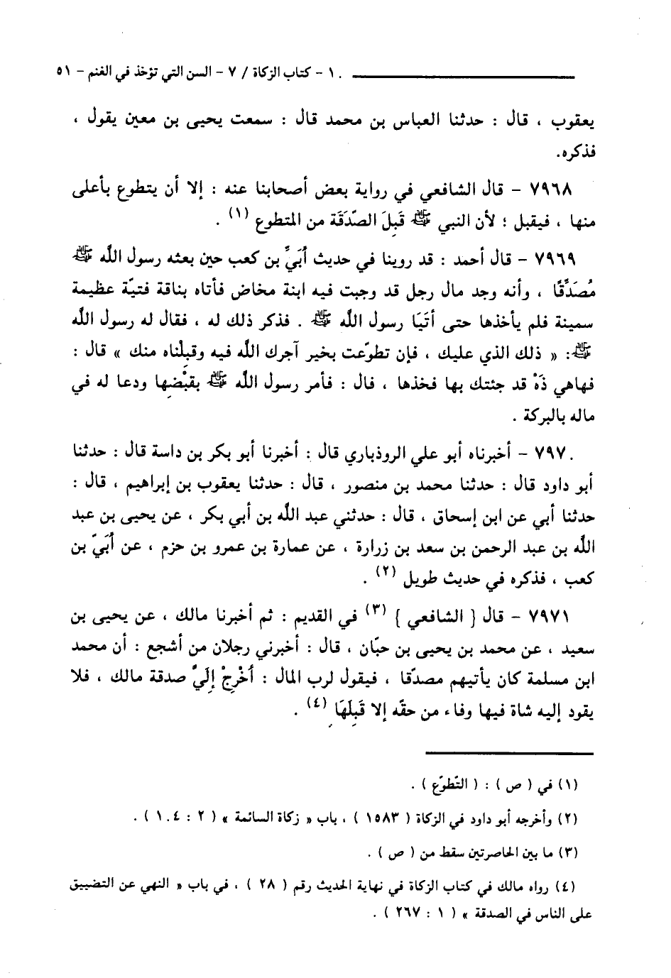 7971 - قَالَ الشَّافِعِيُّ فِي «الْقَدِيمِ»: ثُمَّ أَخْبَرَنَا مَالِكٌ، عَنْ يَحْيَى بْنِ سَعِيدٍ، عَنْ مُحَمَّدِ بْنِ يَحْيَى بْنِ حَبَّانٍ قَالَ: أَخْبَرَنِي رَجُلَانِ، مِنْ أَشْجَعَ: أَنَّ مُحَمَّدَ بْنَ مَسْلَمَةَ، " كَانَ يَأْتِيَهُمْ مُصَدِّقًا، فَيَقُولُ لِرَبِّ الْمَالِ: §أَخْرَجْ إِلَيَّ صَدَقَةَ مَالِكَ، فَلَا يَقُودُ إِلَيْهِ شَاةً فِيهَا وَفَاءٌ مِنْ حَقِّهِ إِلَّا قَبِلَهَا " -[52]-
