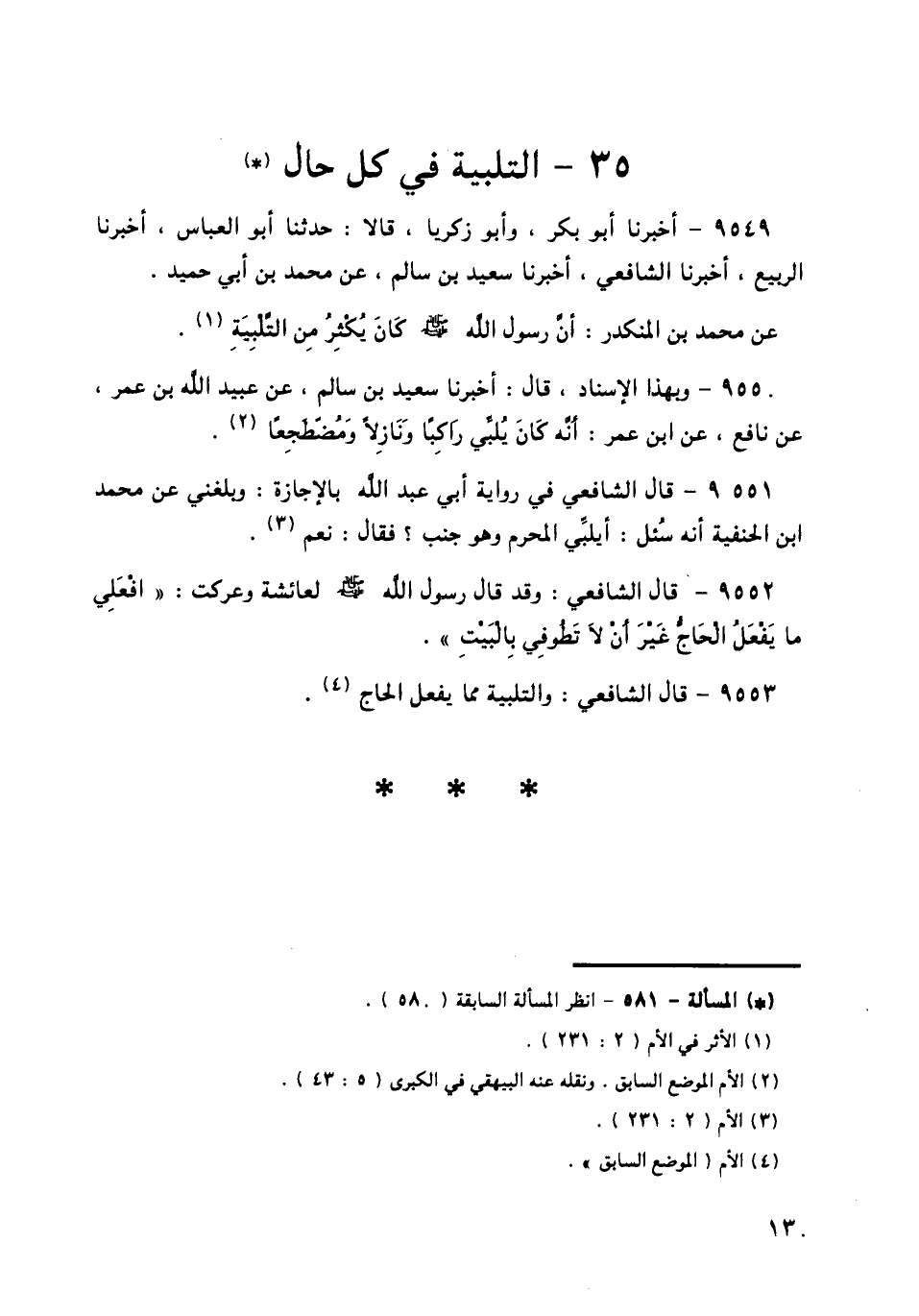 9553 - قَالَ الشَّافِعِيُّ: وَالتَّلْبِيَةُ مِمَّا يَفْعَلُ الْحَاجُّ