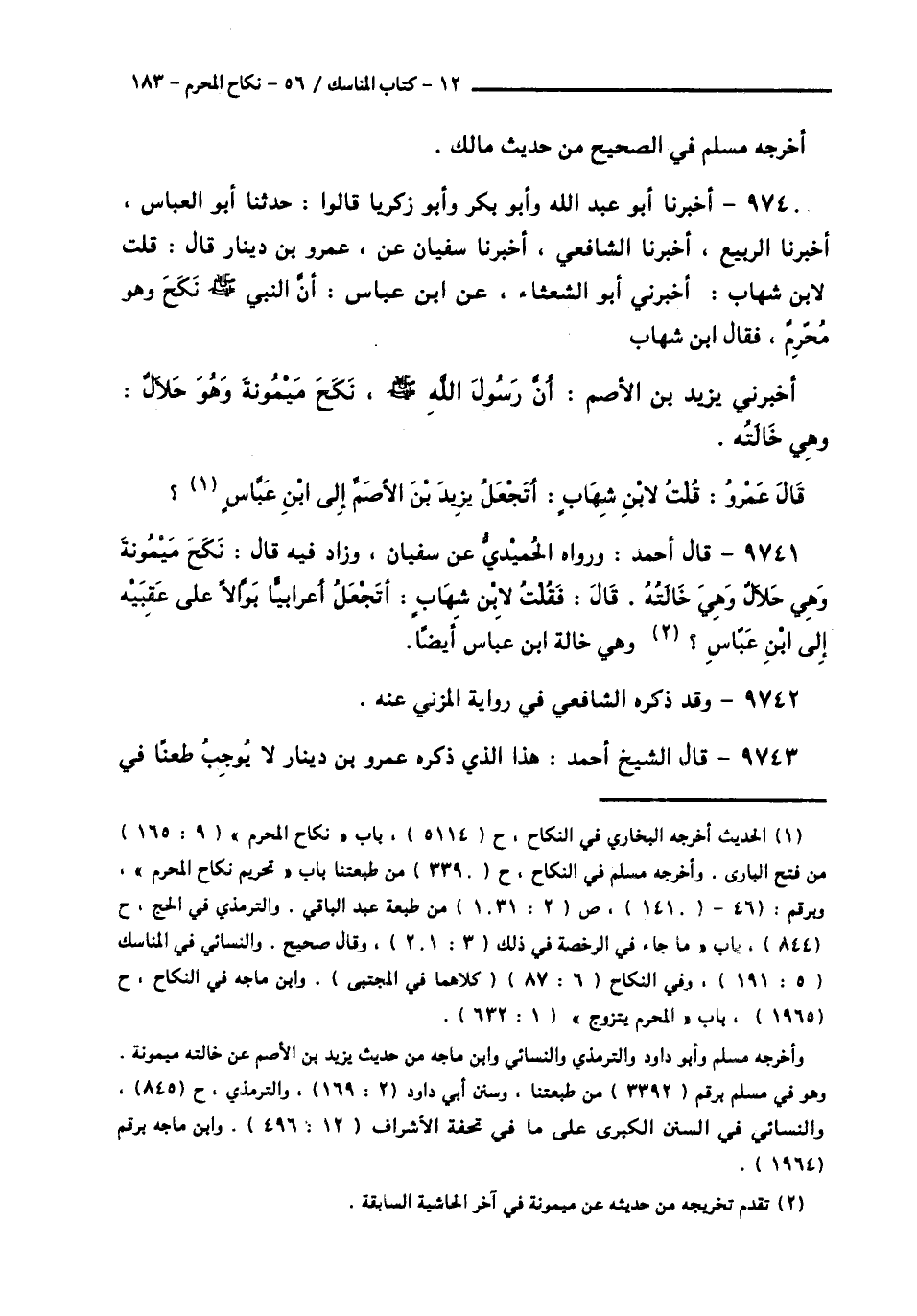 9740 - أَخْبَرَنَا أَبُو عَبْدِ اللَّهِ، وَأَبُو بَكْرٍ، وَأَبُو زَكَرِيَّا، قَالُوا: حَدَّثَنَا أَبُو الْعَبَّاسِ، أَخْبَرَنَا الرَّبِيعُ، أَخْبَرَنَا الشَّافِعِيُّ، أَخْبَرَنَا سُفْيَانُ، عَنْ عَمْرِو بْنِ دِينَارٍ قَالَ: قُلْتُ لِابْنِ شِهَابٍ: أَخْبَرَنِي أَبُو الشَّعْثَاءِ، عَنِ ابْنِ عَبَّاسٍ: أَنَّ النَّبِيَّ صَلَّى اللهُ عَلَيْهِ وَسَلَّمَ «§نَكَحَ وَهُوَ مُحْرِمٌ»، فَقَالَ ابْنُ شِهَابٍ: أَخْبَرَنِي يَزِيدُ بْنُ الْأَصَمِّ: أَنَّ رَسُولَ اللَّهِ صَلَّى اللهُ عَلَيْهِ وَسَلَّمَ، نَكَحَ مَيْمُونَةَ وَهُوَ حَلَالٌ، وَهِيَ خَالَتُهُ ". قَالَ عَمْرٌو: قُلْتُ لِابْنِ شِهَابٍ: أَتَجْعَلُ يَزِيدَ بْنَ الْأَصَمِّ إِلَى ابْنِ عَبَّاسٍ
