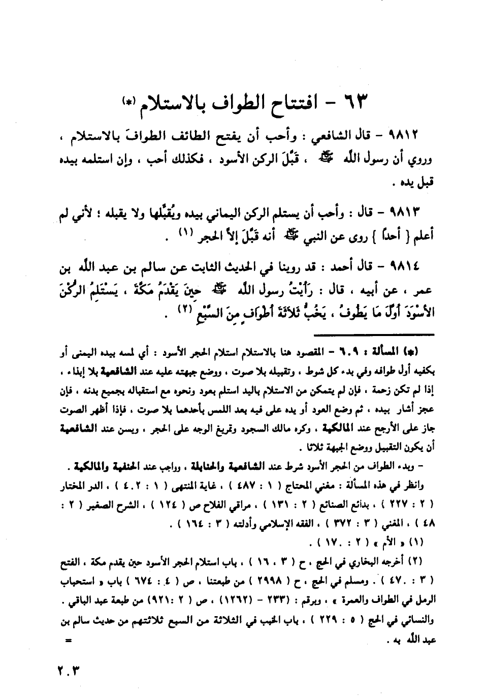 9812 - قَالَ الشَّافِعِيُّ: وَأُحِبُّ أَنْ يَفْتَحَ الطَّائِفُ الطَّوَافَ بِالِاسْتِلَامِ، وَرُوِيَ أَنَّ رَسُولَ اللَّهِ صَلَّى اللهُ عَلَيْهِ وَسَلَّمَ، قَبَّلَ الرُّكْنَ الْأَسْوَدَ، فَكَذَلِكَ أُحِبُّ، وَإِنِ اسْتَلَمَهُ بِيَدِهِ قَبَّلَ يَدَهُ