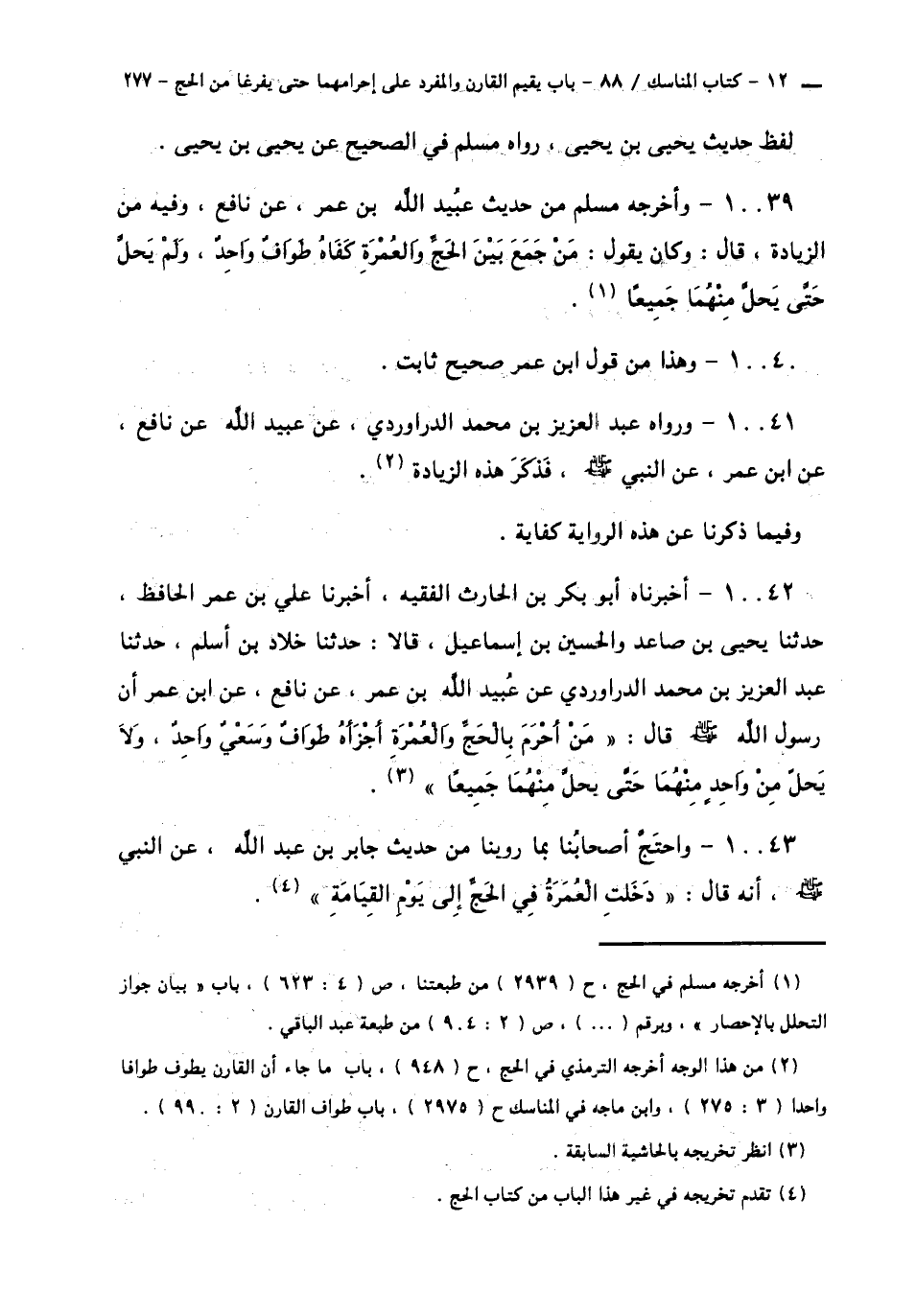 10043 - وَاحْتَجَّ أَصْحَابُنَا بِمَا رُوِّينَا مِنْ حَدِيثِ جَابِرِ بْنِ عَبْدِ اللَّهِ، عَنِ النَّبِيِّ صَلَّى اللهُ عَلَيْهِ وَسَلَّمَ، أَنَّهُ قَالَ: «دَخَلَتِ الْعُمْرَةُ فِي الْحَجِّ إِلَى يَوْمِ الْقِيَامَةِ» -[278]-