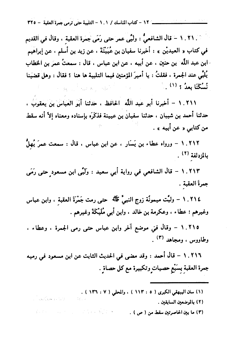 10213 - قَالَ الشَّافِعِيُّ فِي رِوَايَةِ أَبِي سَعِيدٍ: «وَلَبَّى ابْنُ مَسْعُودٍ حَتَّى رَمَى جَمْرَةَ الْعَقَبَةِ»،