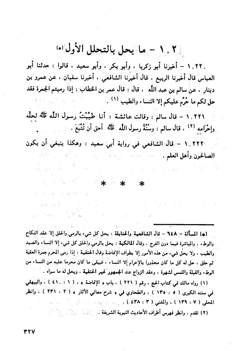 10220 - أَخْبَرَنَا أَبُو زَكَرِيَّا، وَأَبُو بَكْرٍ، وَأَبُو سَعِيدٍ، قَالُوا: حَدَّثَنَا أَبُو الْعَبَّاسِ قَالَ: أَخْبَرَنَا الرَّبِيعُ قَالَ: أَخْبَرَنَا الشَّافِعِيُّ، أَخْبَرَنَا سُفْيَانُ، عَنْ عَمْرِو بْنِ دِينَارٍ، عَنْ سَالِمِ بْنِ عَبْدِ اللَّهِ قَالَ: قَالَ عُمَرُ بْنُ الْخَطَّابِ: «§إِذَا رَمَيْتُمُ الْجَمْرَةَ فَقَدْ حَلَّ لَكُمْ مَا حُرِّمَ عَلَيْكُمْ، إِلَّا النِّسَاءَ وَالطِّيبَ»