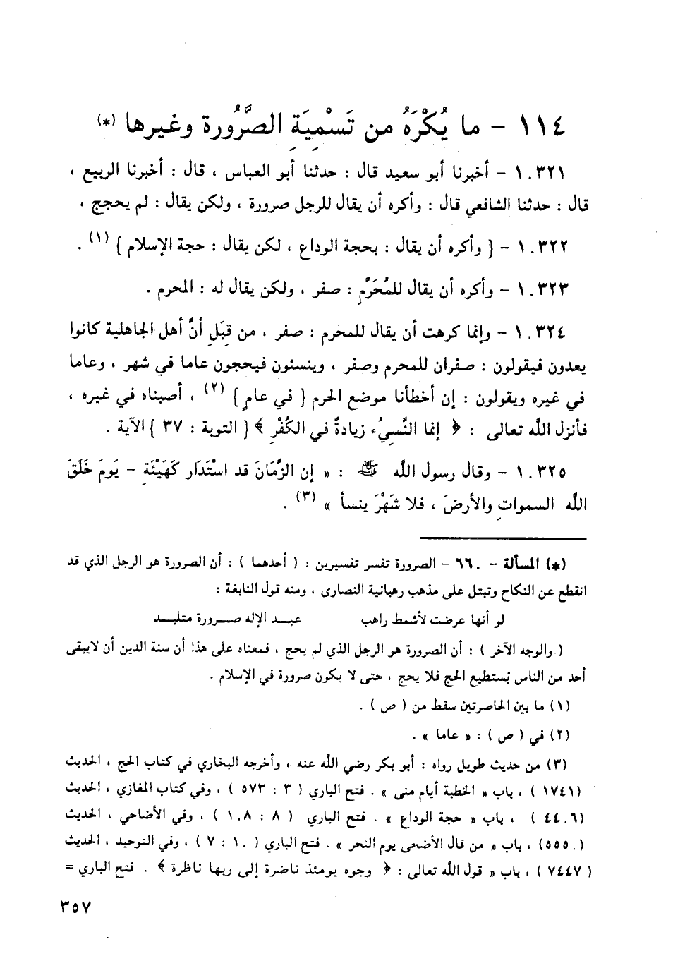 10325 - وَقَالَ رَسُولُ اللَّهِ صَلَّى اللهُ عَلَيْهِ وَسَلَّمَ: «إِنَّ الزَّمَانَ قَدِ اسْتَدَارَ كَهَيْئَتِهِ يَوْمَ خَلَقَ اللَّهُ السَّمَوَاتِ وَالْأَرْضَ، فَلَا شَهْرَ يُنْسَأُ» -[358]-،