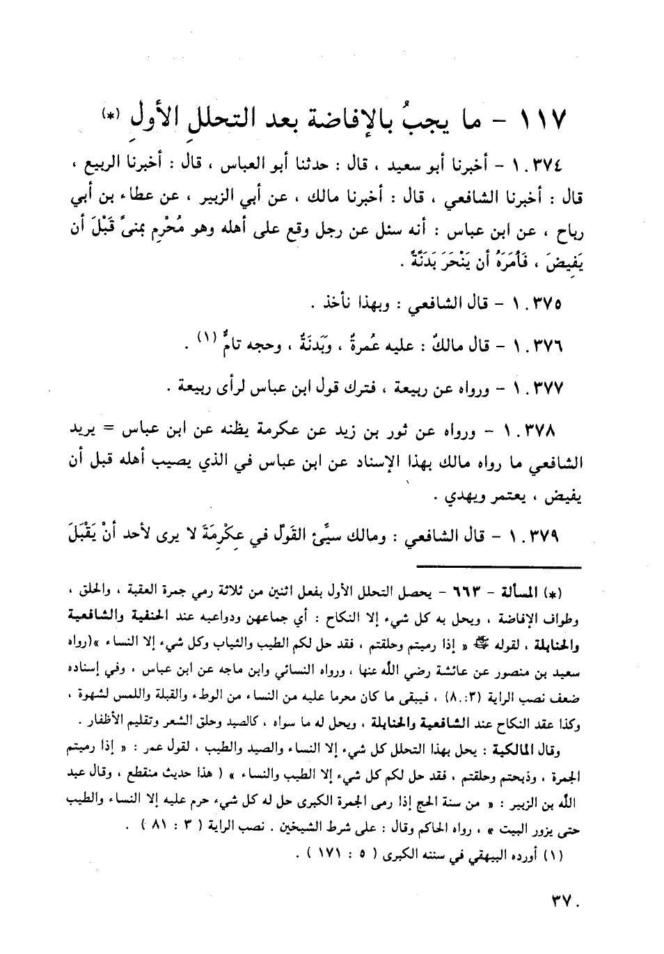 10374 - أَخْبَرَنَا أَبُو سَعِيدٍ قَالَ: حَدَّثَنَا أَبُو الْعَبَّاسِ قَالَ: أَخْبَرَنَا الرَّبِيعُ قَالَ: أَخْبَرَنَا الشَّافِعِيُّ قَالَ: أَخْبَرَنَا مَالِكٌ، عَنْ أَبِي الزُّبَيْرِ، عَنْ عَطَاءِ بْنِ أَبِي رَبَاحٍ، عَنِ ابْنِ عَبَّاسٍ: «أَنَّهُ سُئِلَ عَنْ §رَجُلٍ وَقَعَ عَلَى أَهْلِهِ، وَهُوَ مُحْرِمٌ بِمِنًى قَبْلَ أَنْ يُفِيضَ، فَأَمَرَهُ أَنْ يَنْحَرَ بَدَنَةً»
